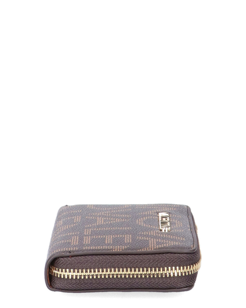 Portafoglio con stampa all over logato su base grana riciclata, e dettagli in nappa Dimensioni :10*15*3 cm
