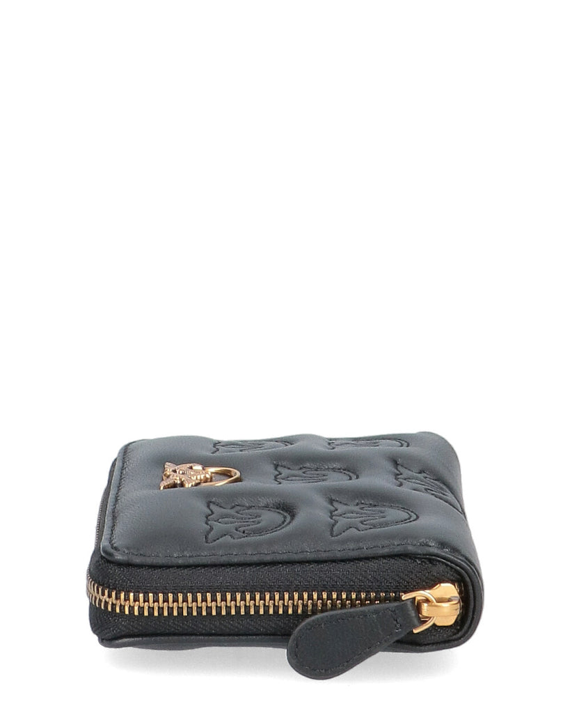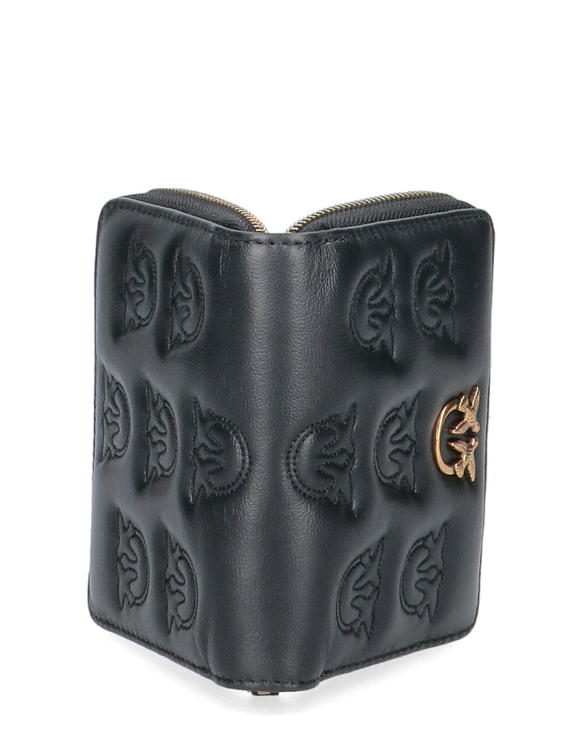 Portafoglio zip-around di forma quadrata in morbida pelle mano seta, personalizzato con placchetta Love Birds Diamond Cut su base in pelle. L'interno è foderato in polycotton. Chiusura con zip. -Dimensioni :10*13*2cm (altezza-lunghezza-larghezza)