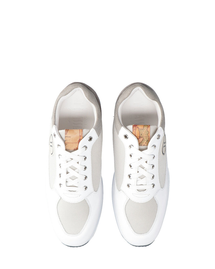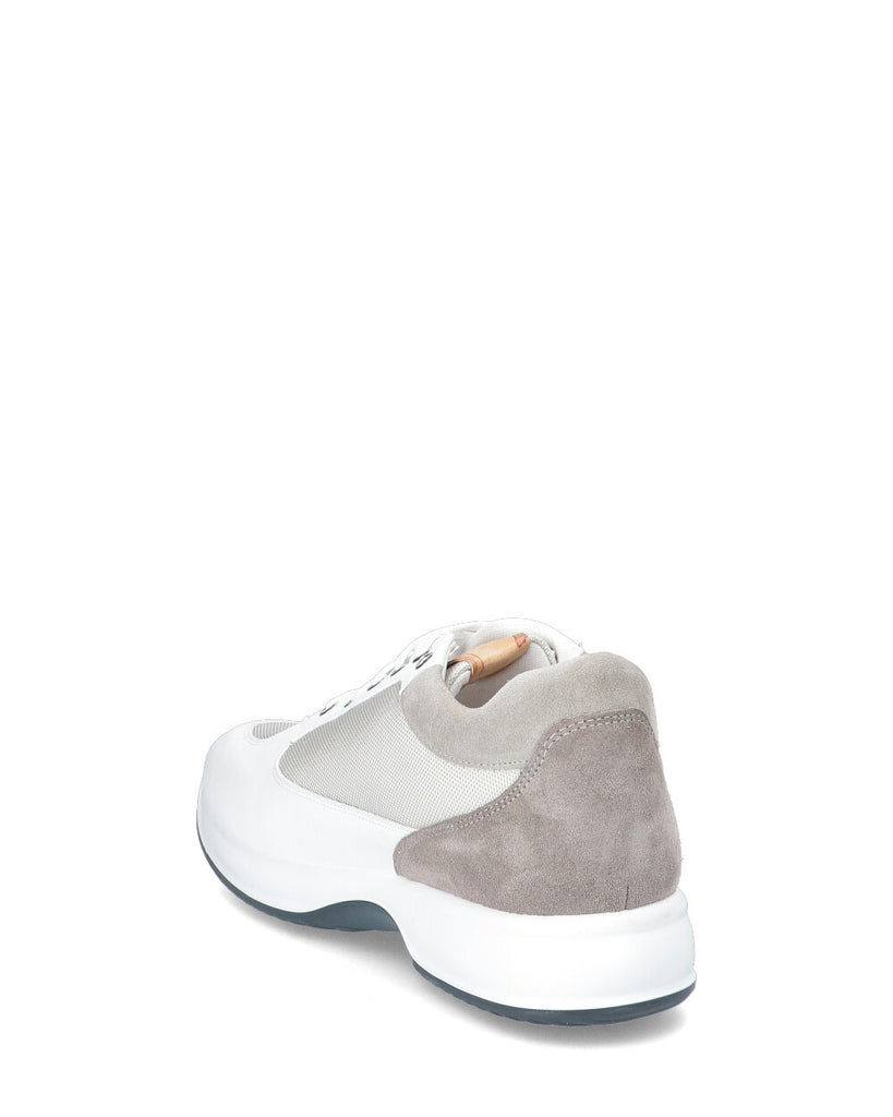 -sneakers in pelle con riporti in tessuto -Modello con lacci -Fondo gomma -altezza suola 3 cm