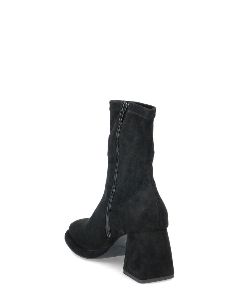 Tronchetto stretch alcantara -Zip laterale -Fondo gomma -Altezza tacco 7 cm -Altezza plateau 1 cm