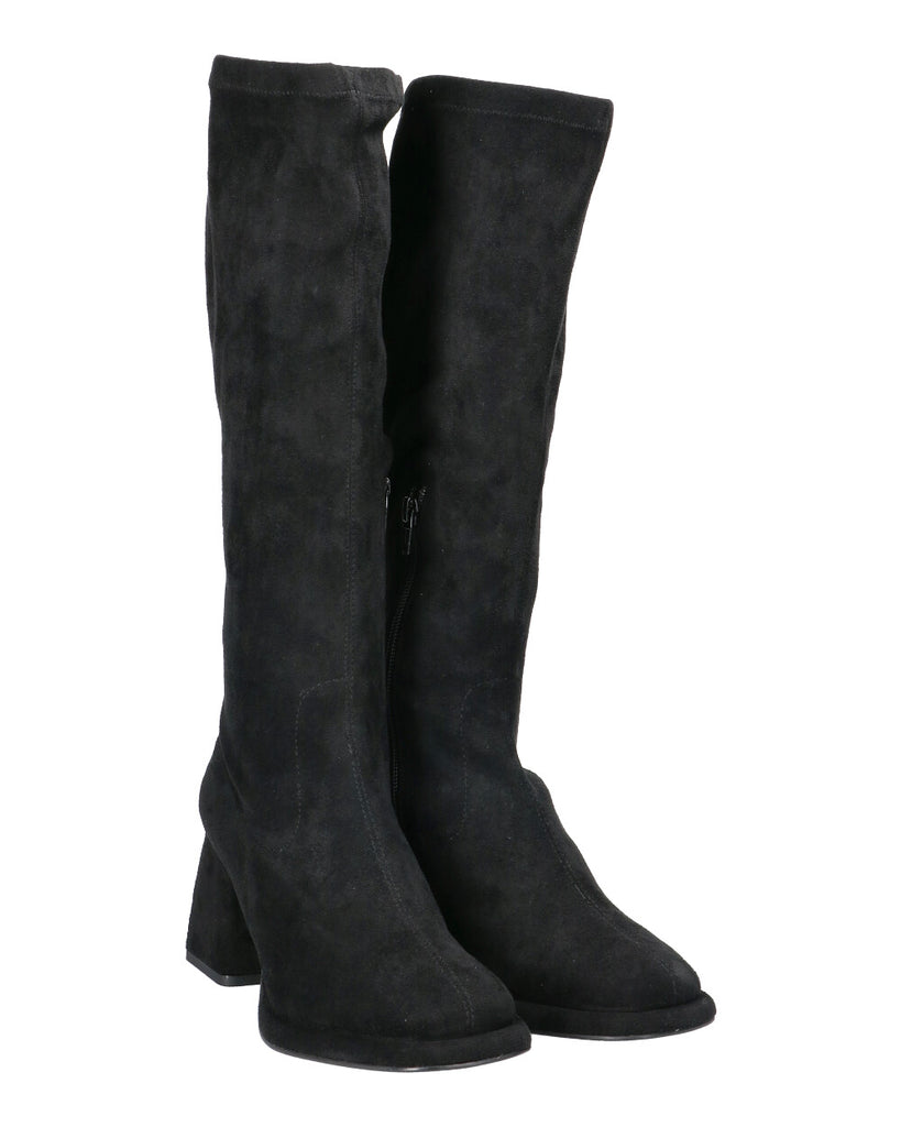 -Stivale stretch in alcantara -Zip laterale -Fondo gomma -Altezza tacco 7 cm -Altezza plateau 1 cm