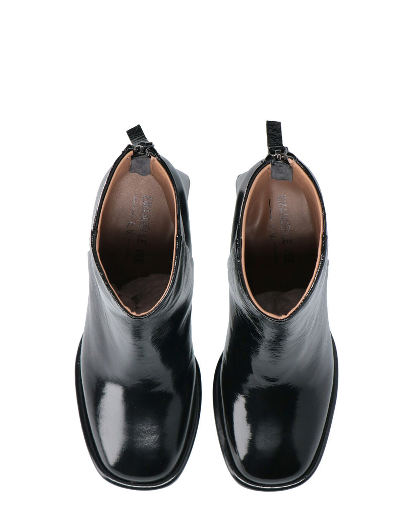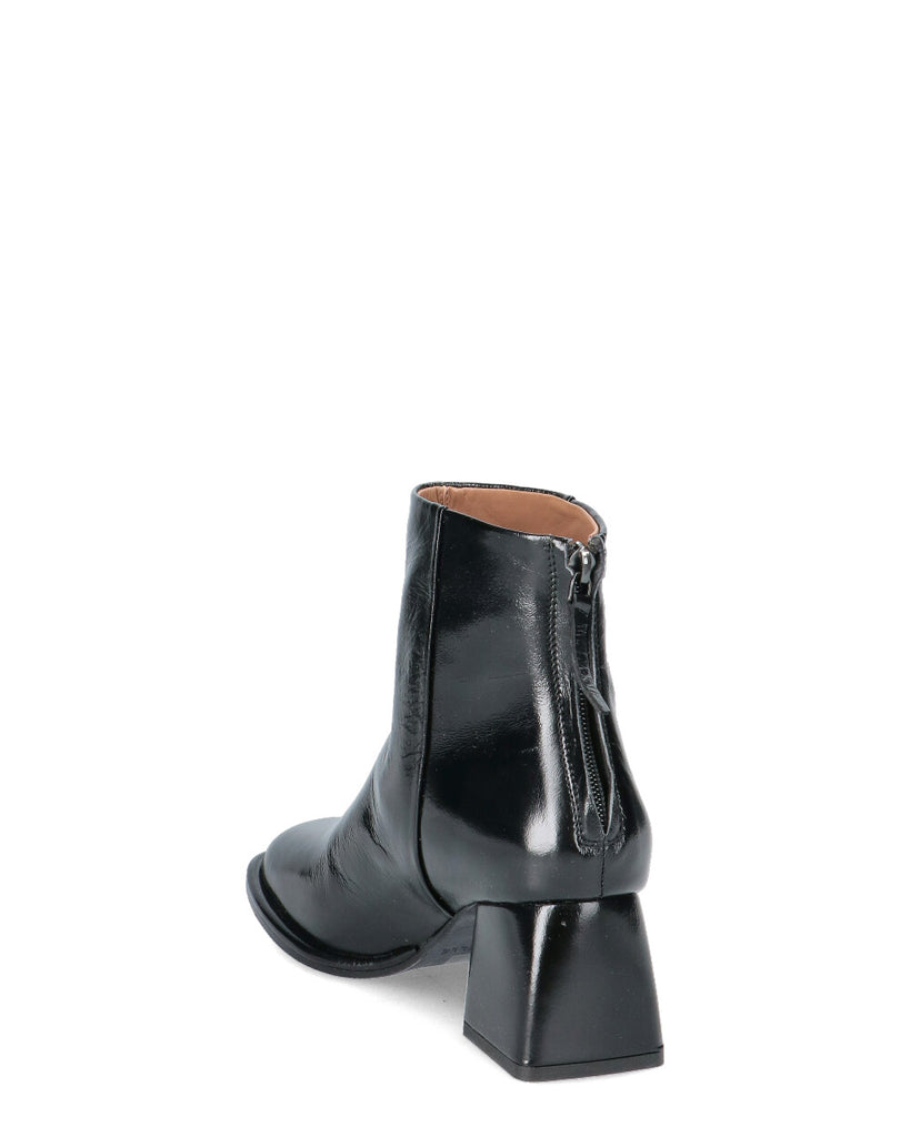 Tronchetto in pelle vernice con zip sul dietro -Altezza tacco 6 cm -Suola in cuoio