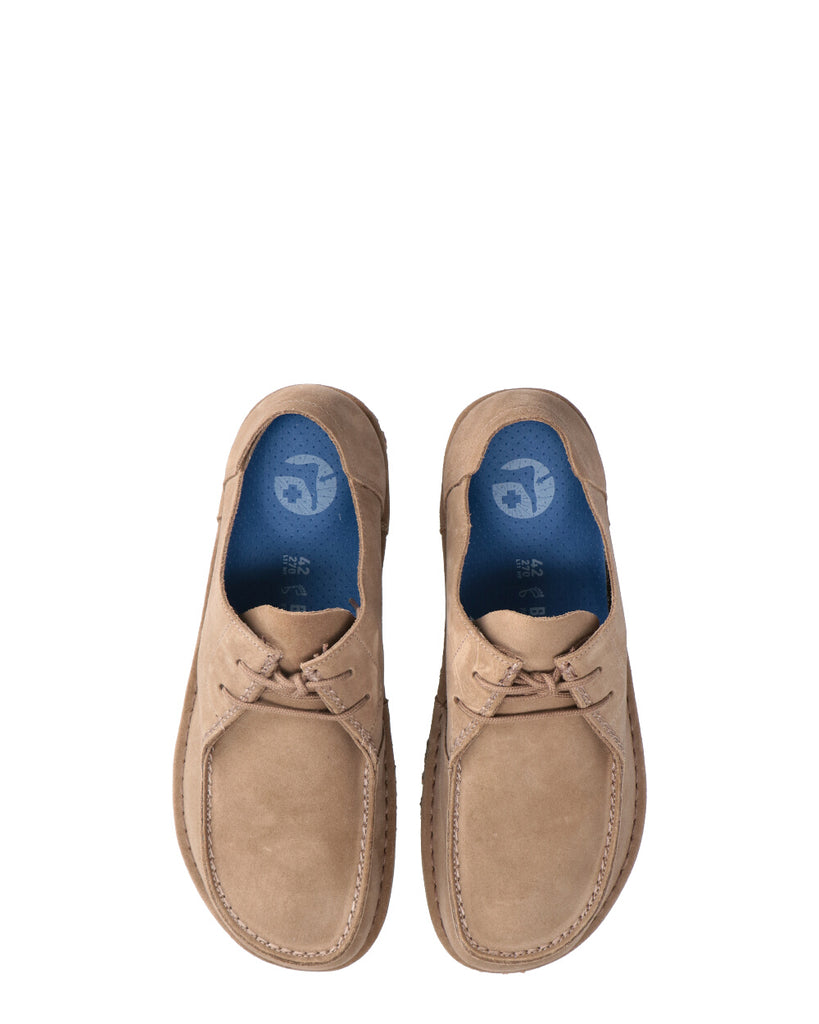 Plantare originale Deep Blue BIRKENSTOCK; anatomico ed estraibile Tomaia: pelle scamosciata Sottopiede: microfibra Suola: suola in gomma in caucciù naturale con elementi in sughero Dettagli: mocassino con cucitura appariscente e linguetta sul tallone Plantare: “Made in Germany” Calzata regolare