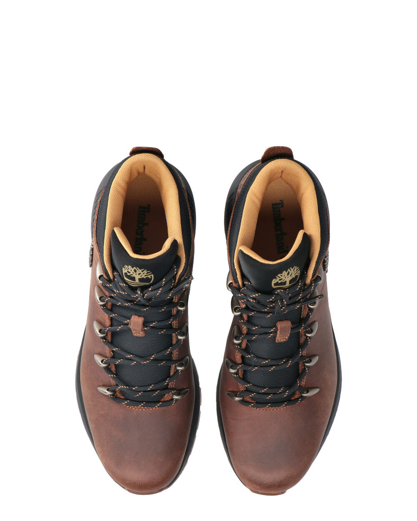Tomaia in pelle Premium Leather di Timberland® e tessuto ReBOTL™ contenente almeno il 50% di plastica riciclata Timberland sostiene una produzione della pelle responsabile attraverso il Leather Working Group Modello stringato Fodera in tessuto ReBOTL™ contenente almeno il 50% di plastica riciclata Soletta OrthoLite® Intersuola in EVA a compressione