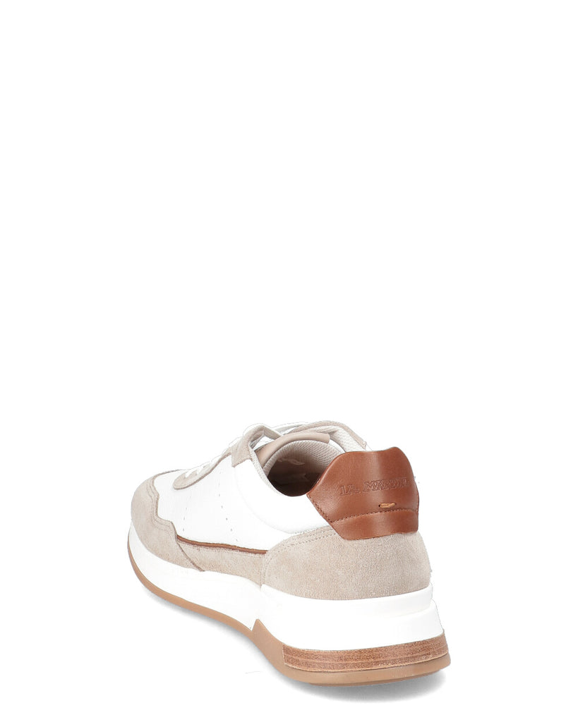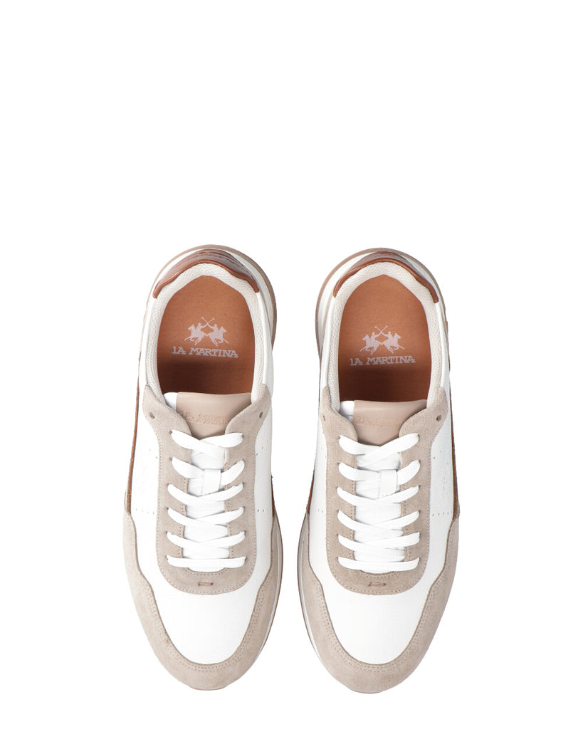 Realizzato in un mix di pelle bottalata naturale e camoscio Presenta inserti a contrasto che ne esaltano il design Il profilo in pelle sotto il logo sul laterale aggiunge un tocco distintivo Logo La Martina in alta frequenza sul lato della scarpa La scritta La Martina è impressa sulla linguetta Fusbett personalizzato per una calzata comoda e su misura