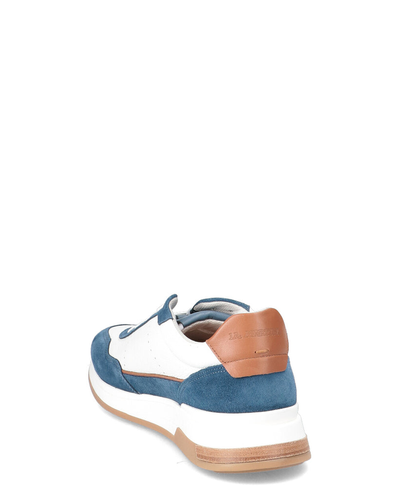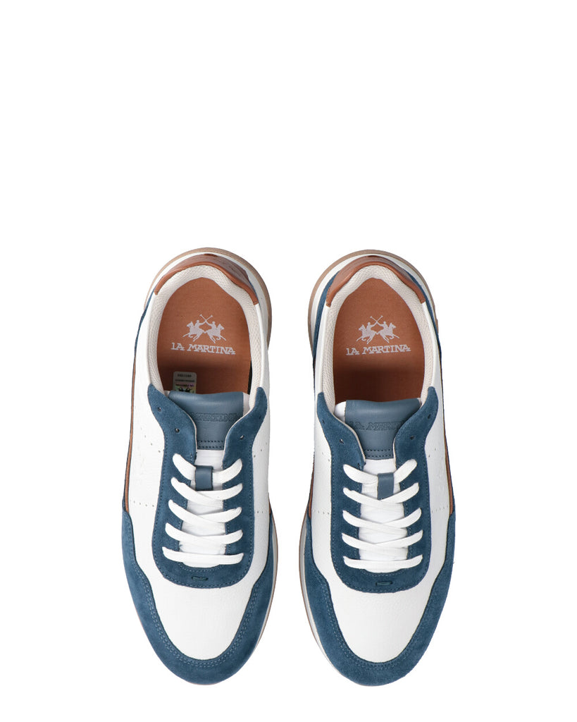 Realizzato in un mix di pelle bottalata naturale e camoscio Presenta inserti a contrasto che ne esaltano il design Il profilo in pelle sotto il logo sul laterale aggiunge un tocco distintivo Logo La Martina in alta frequenza sul lato della scarpa La scritta La Martina è impressa sulla linguetta Fusbett personalizzato per una calzata comoda e su misura