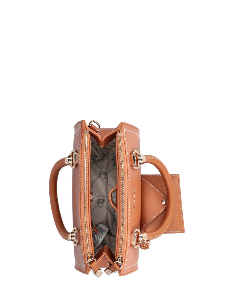 Borsa a mano in PU bottalato Logo in metallo sul davanti Comodi manici Tracolla regolabile e rimovibile Pochette Due scomparti con zip Etichetta interna logata Piedini metallici al fondo Chiusura con bottone magnetico Misure: 24 x 10 x 18 cm L'accessorio può essere indossato sia a tracolla che a spalla