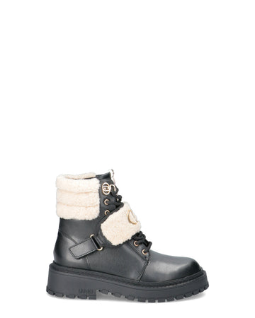 Anfibi in pelle Fodera warm Dettagli in pelliccia sintetica Maxi logo monogram Chiusura con velcro Occhiello con logo monogram Fondo con guardolo logato Battistrada dentellato Altezza suola: 5 cm Altezza gambale: 15 cm