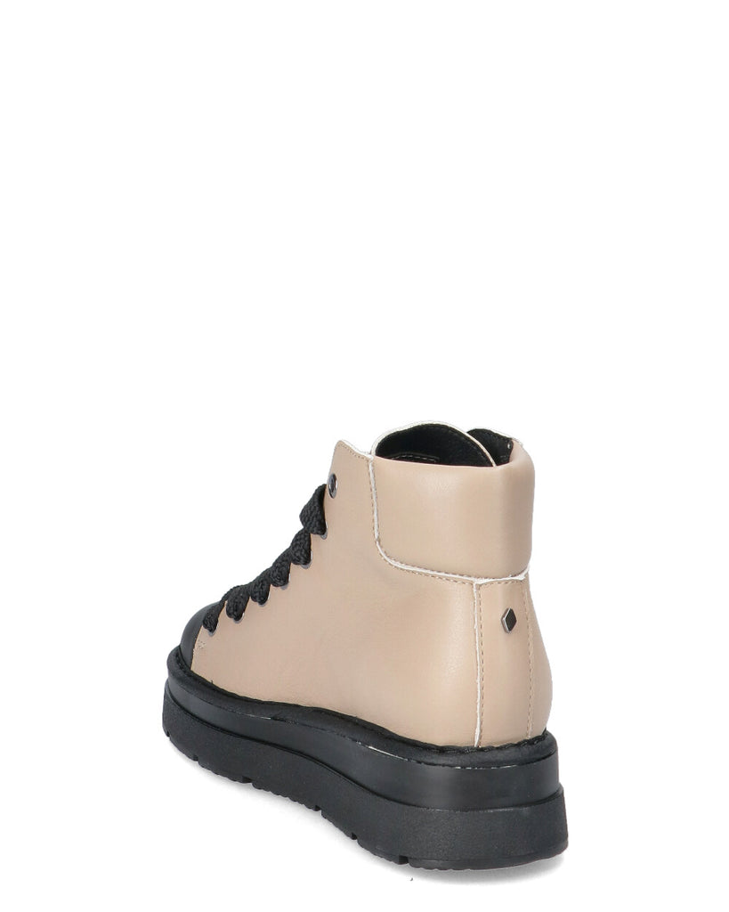 -Polacchino in pelle con puntale gommato -Fondo gomma -Altezza suola 4 cm -Calzata regolare