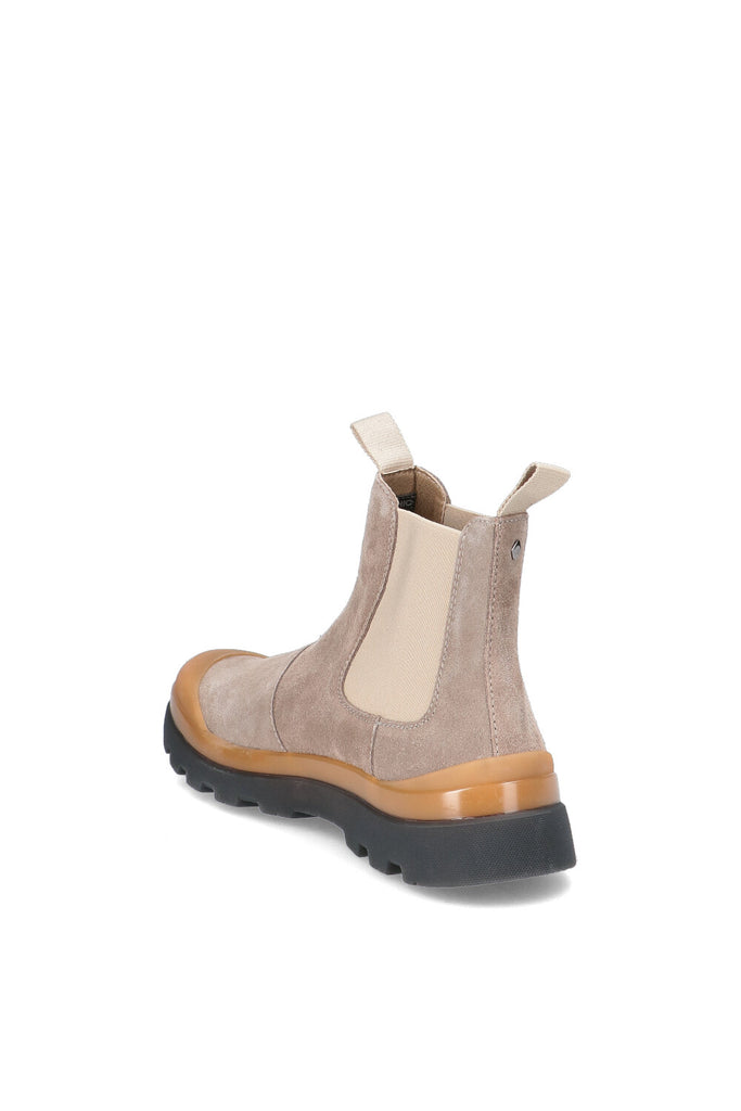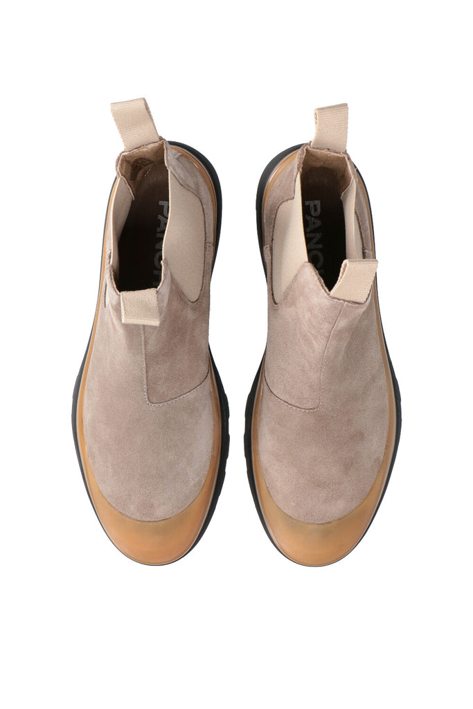 Stivaletti Beatle uomo P03 con tomaia in suede verde militare, foderati in microfibra. Suola di 2,5 cm dal design a forma di "guscio" ed elastici laterali neri. La linea P03 è estremamente protettiva con un gusto tecno-cool a prova di globe-trotter.