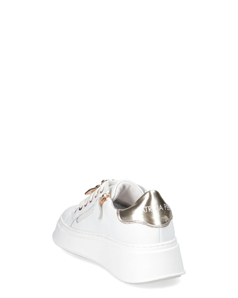 -Sneakers in pelle -Chiusura con lacci e zip laterale -Soletta interna estraibile -Fondo gomma -altezza fondo 4.5 cm