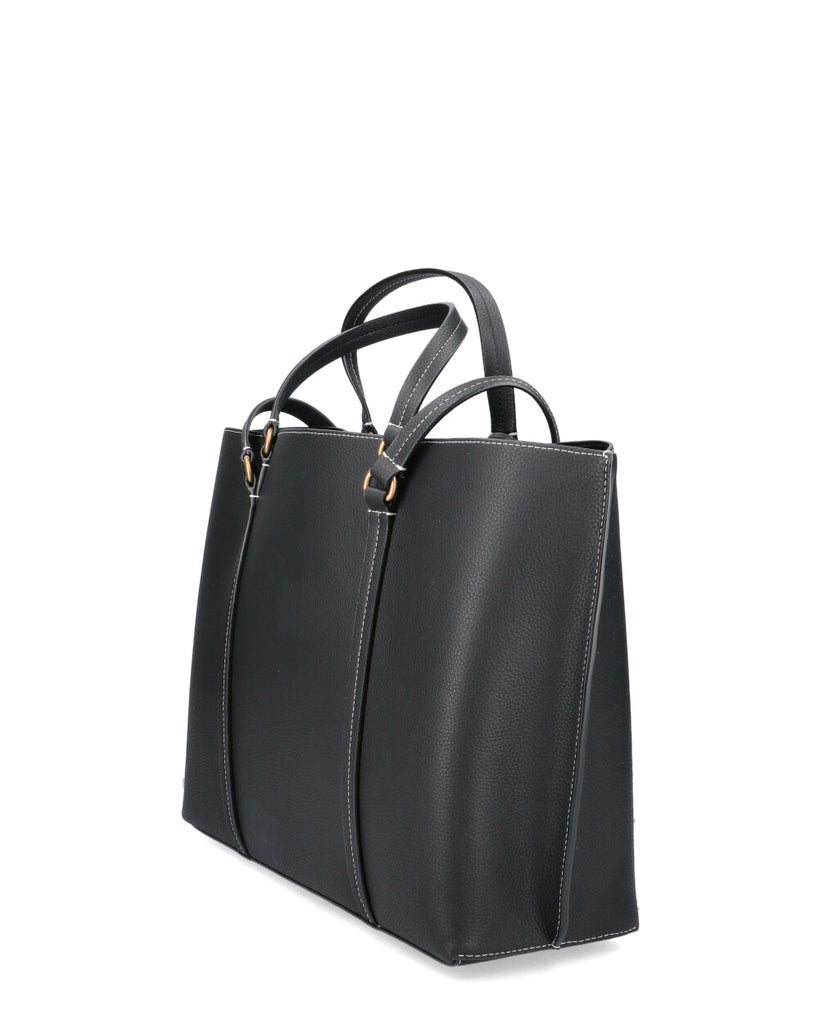 Borsa shopper large in pelle bottalata accoppiata. Doppio set di manici, di due dimensioni differenti, personalizzati con charm logato. Dimensioni : 45*37*14 cm