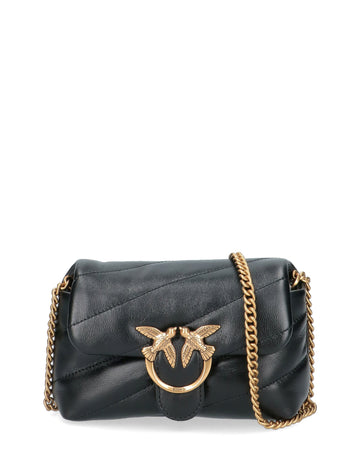Baby Love Bag Puff in morbida nappa con maxi trapuntatura obliqua. La chiusura è completata dall'iconica fibbia in metallo Love Birds Diamond Cut, galvanica antique gold. L'interno è foderato in microfibra scamosciata e comprende tasca a parete chiusa con zip. Completa di tracolla sottile a catena in metallo. Dimensioni 12*18*7 cm