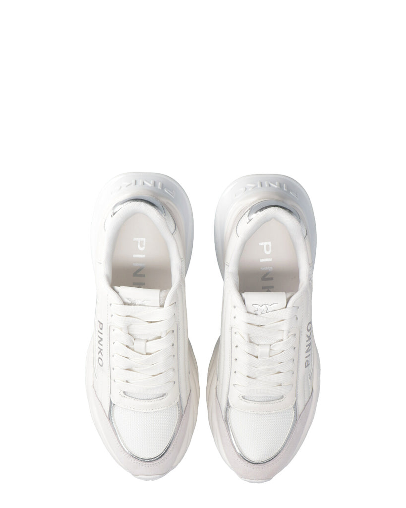 Scarpe da ginnastica Ariel con tomaia in mesh arricchita da speciali inserti in pelle liscia e suede dal finishing scamosciato. Il lato esterno delle sneakers è personalizzato con logo PINKO che conferisce un tocco di lusso e raffinatezza al design della calzatura, contraddistinto dalla caratteristica suola running. Queste sneakers sono costruite con una lavorazione strobel, che garantisce la comodità di una pantofola. All’interno, la sneaker è dotata di soletta in tessuto e fussbet alto circa 2 cm nel tacco, studiato per offrire un maggior comfort durante tutto il giorno.