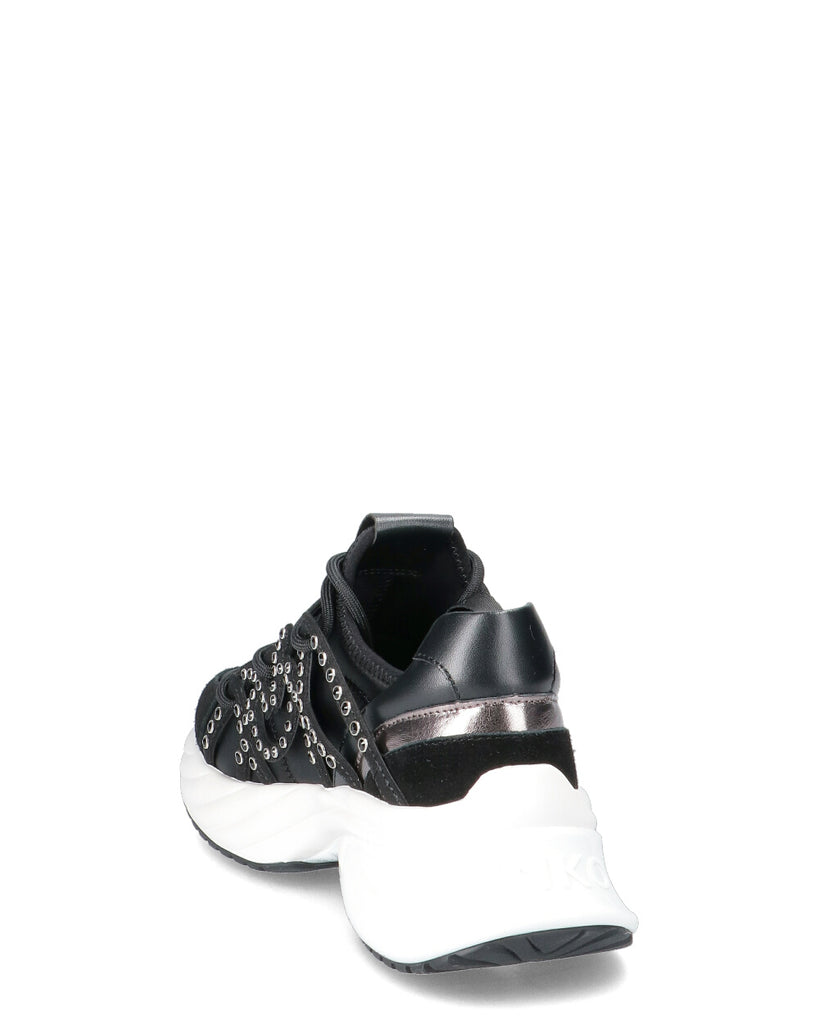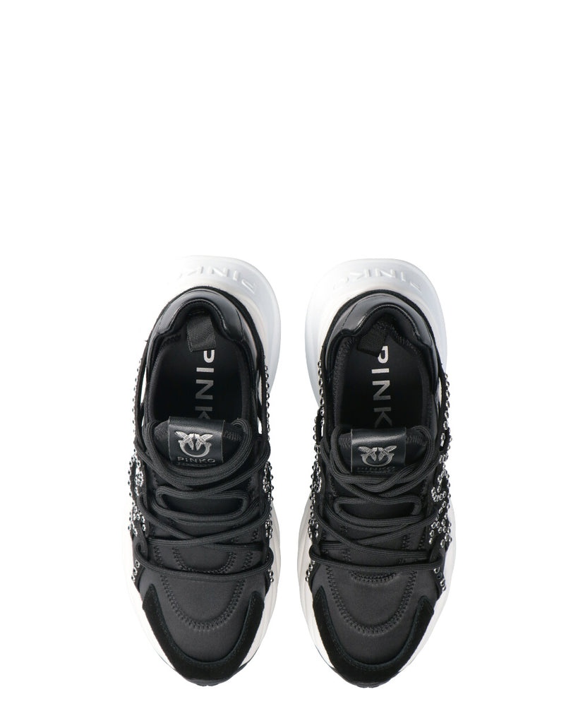 Scarpe da ginnastica Ariel con tomaia in tessuto tecnico effetto satin con inserti e dettagli in suede. Entrambi i lati della scarpa sono personalizzati con motivo personalizzato da logo uccellini Love Birds impreziosito con brillantini, che conferisce un tocco di lusso e raffinatezza al design contraddistinto dalla caratteristica suola running. Queste scarpe da ginnastica sono costruite con una lavorazione strobel, che garantisce la comodità di una pantofola. All’interno, la sneaker è dotata di soletta in tessuto e fussbet alto circa 2 cm nel tacco, studiato per offrire un maggior comfort durante tutto il giorno.