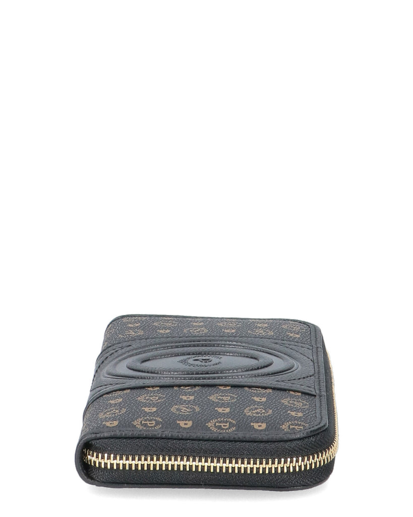 Logo centrale dall'effetto tridimensionale Dettagli in vitello bottalato Stampa monogramma P-alloro Chiusura con zip in metallo Interno con 2 scomparti suddivisi da una tasca portamonete con zip 2 tasche per banconote 8 tasche per carte Dimensioni: 19X10X2