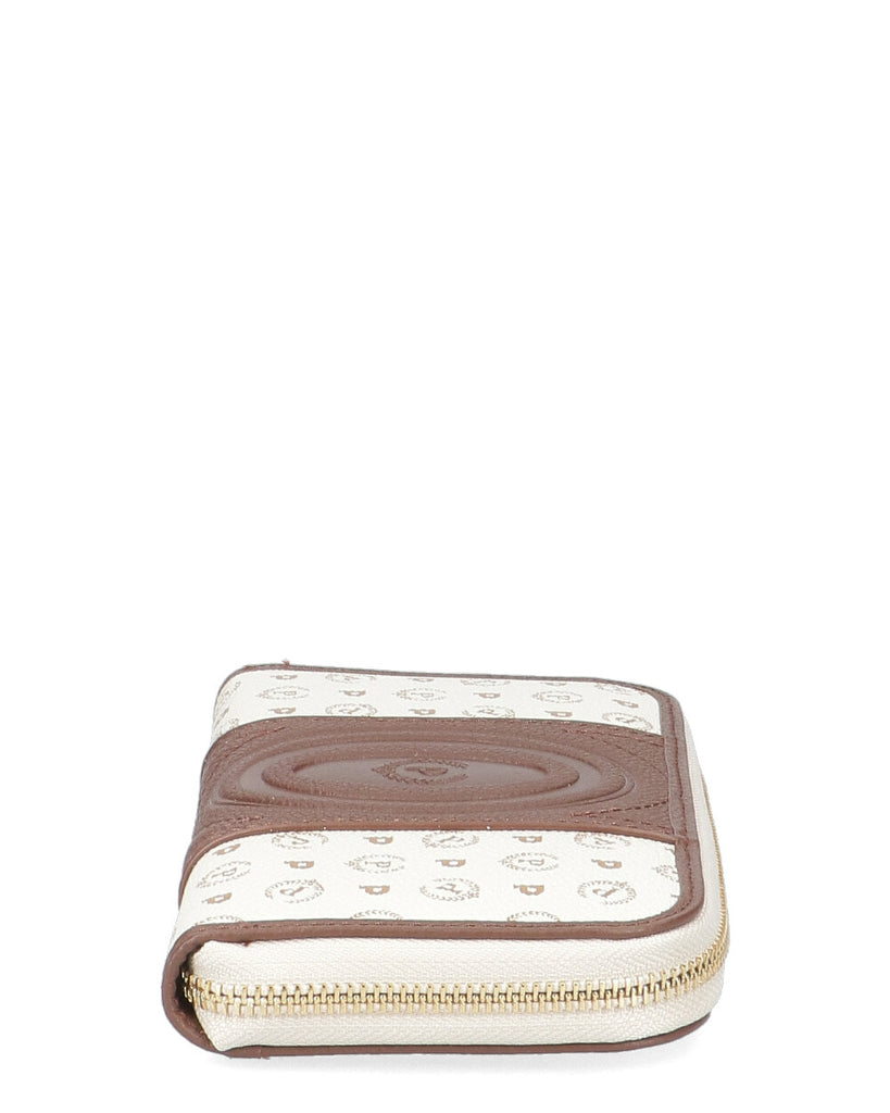 Logo centrale dall'effetto tridimensionale Dettagli in vitello bottalato Stampa monogramma P-alloro Chiusura con zip in metallo Interno con 2 scomparti suddivisi da una tasca portamonete con zip 2 tasche per banconote 8 tasche per carte Dimensioni: 19X10X2