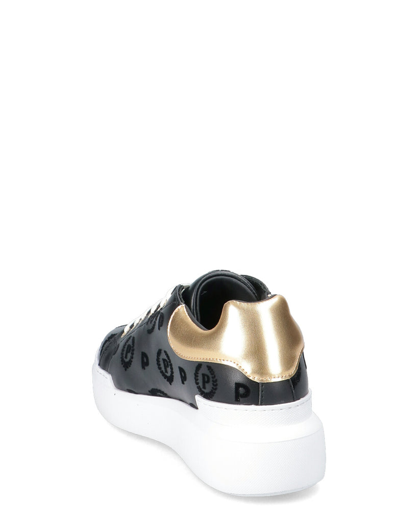 Stampa floccata Charm a forma di cuore e fiore in metallo oro chiaro Chiusura con lacci Tallone in laminato oro Fondo voluminoso in gomma Tacco: 45 MM Fondo: Gomma