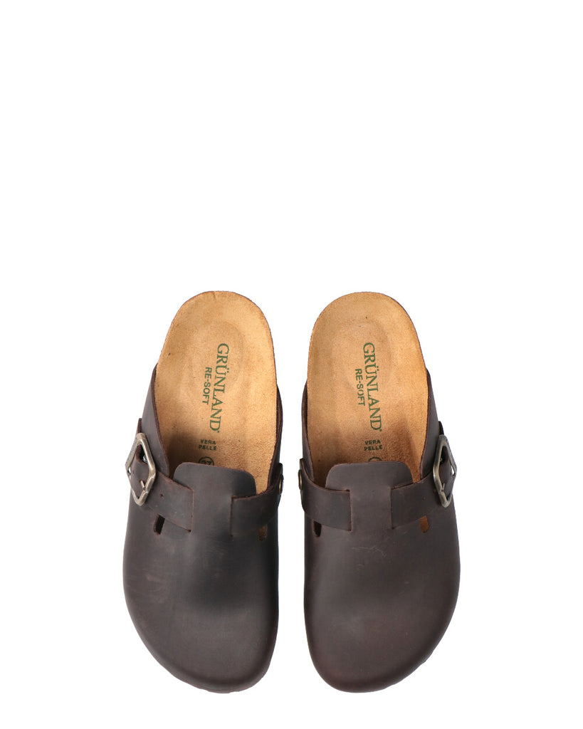 Ciabatta a punta chiusa in vera pelle Sottopiede Re-Soft in sughero naturale Fibbia metal-free