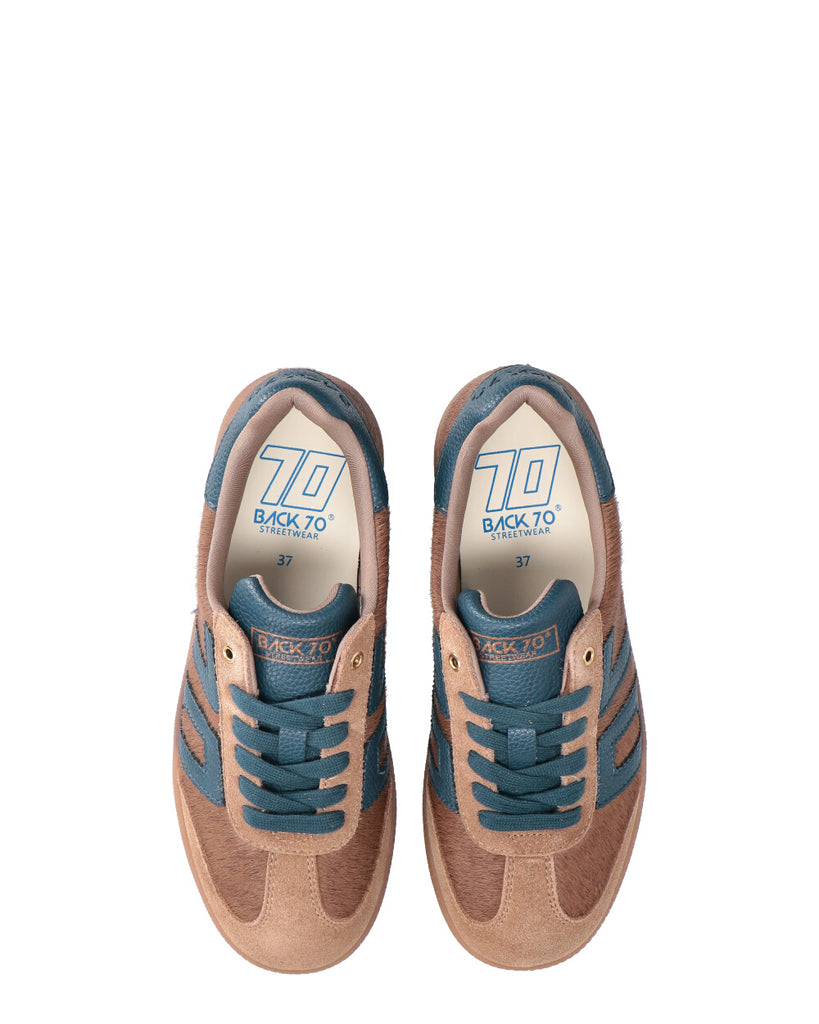Sneakers in pelle di cavallino e riporti in pelle scamosciata Fodera interna in foam Chiusura con lacci