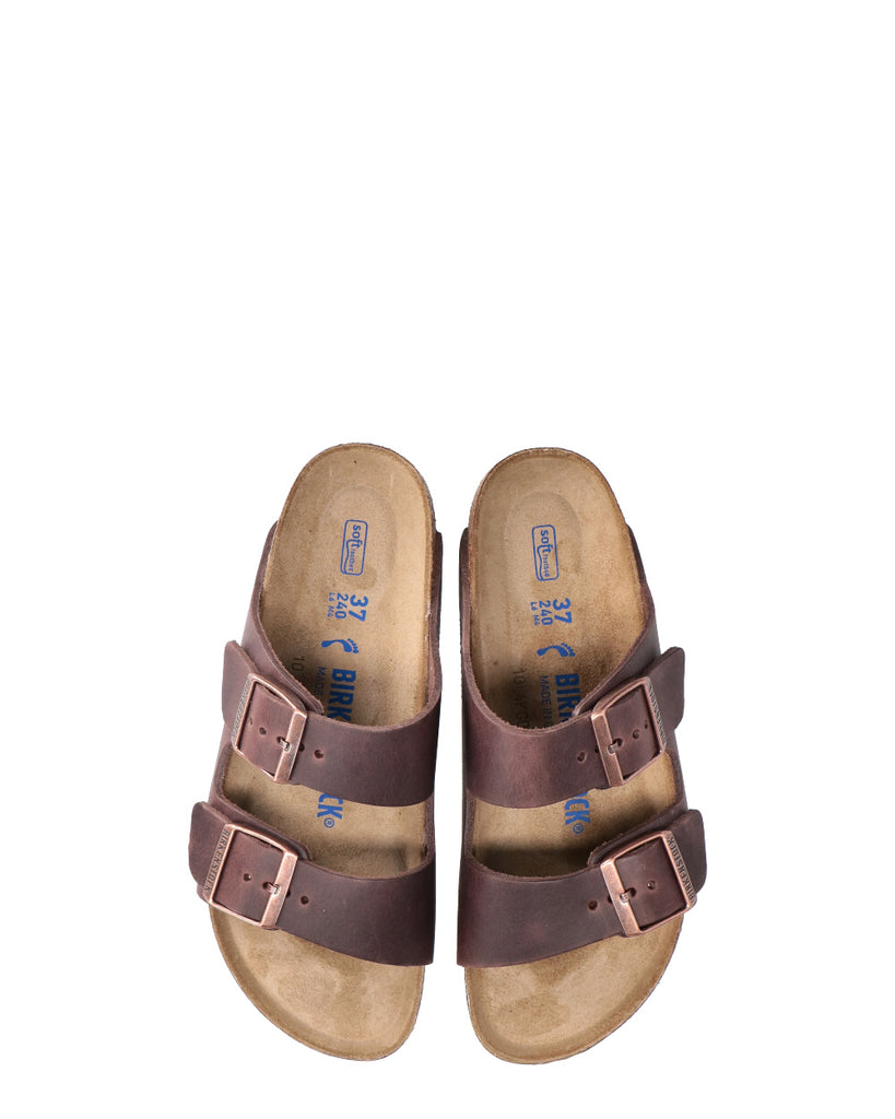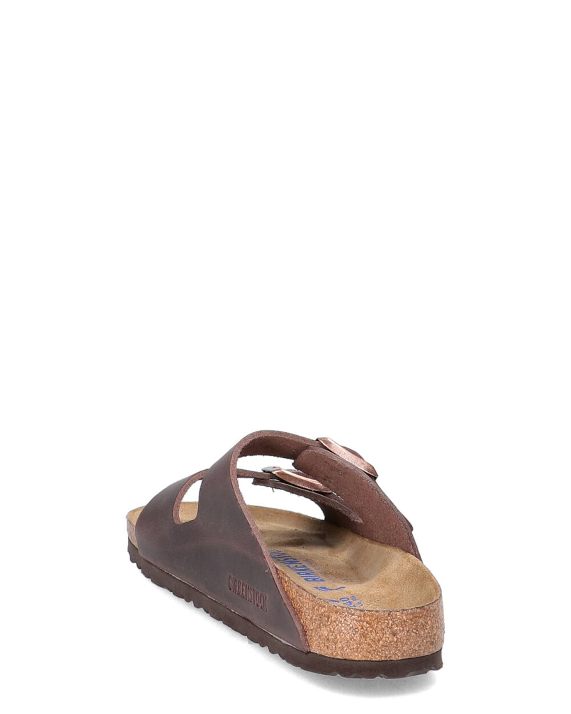 Morbido plantare originale BIRKENSTOCK; anatomico Tomaia: pelle nabuk oliata Sottopiede: pelle scamosciata Suola: EVA Dettagli: due cinturini con fibbie ad ardiglione in metallo regolabili individualmente “Made in Germany” Calzata stretta