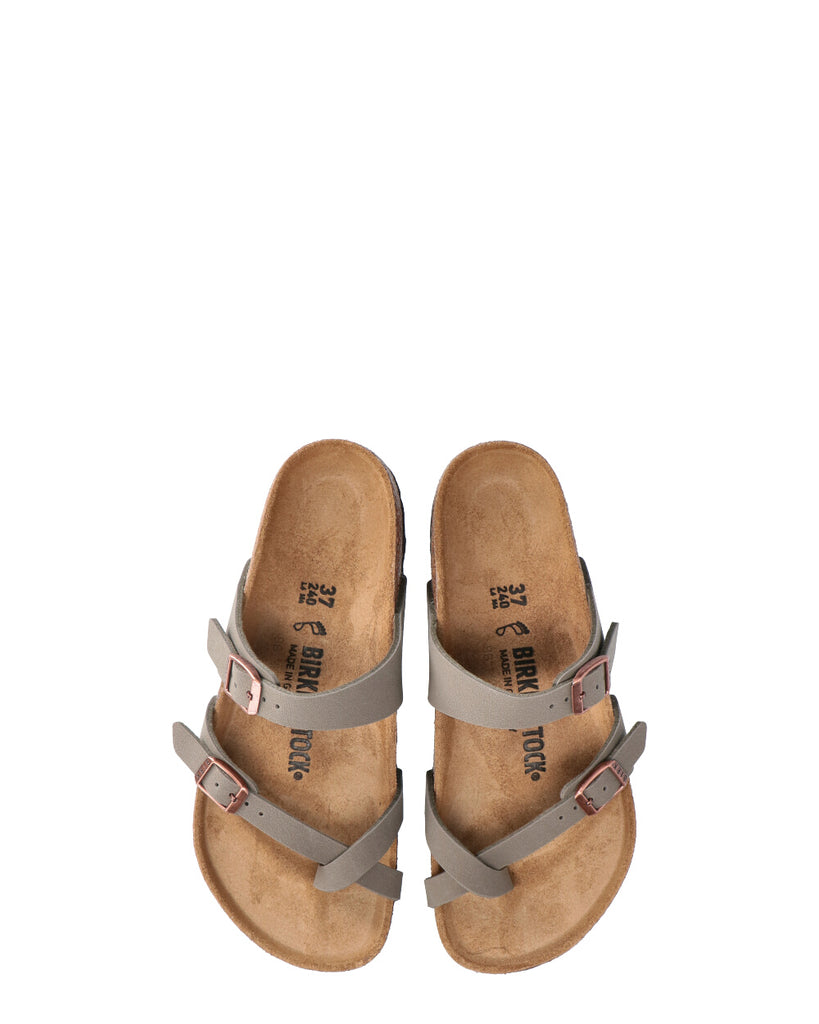Plantare dalla forma anatomica in sughero e lattice Tomaia: Birko-Flor® effetto Nabuk Sottopiede: pelle scamosciata Suola: EVA Dettagli: due cinturini ciascuno con una fibbia di metallo regolabile individualmente; cinturino incrociato attorno all’alluce “Made in Germany” Calzata regolare
