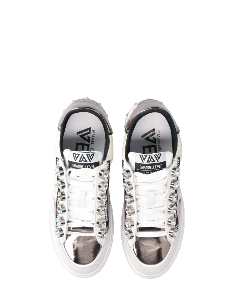 tomaia in pelle e tessuto chiusura con lacci interno in pelle e tessuto soletta estraibile in lattice e pelle logo sulla linguetta inserto stampa logo pietre applicate borchie applicate suola in gomma altezza della suola (cm): 3