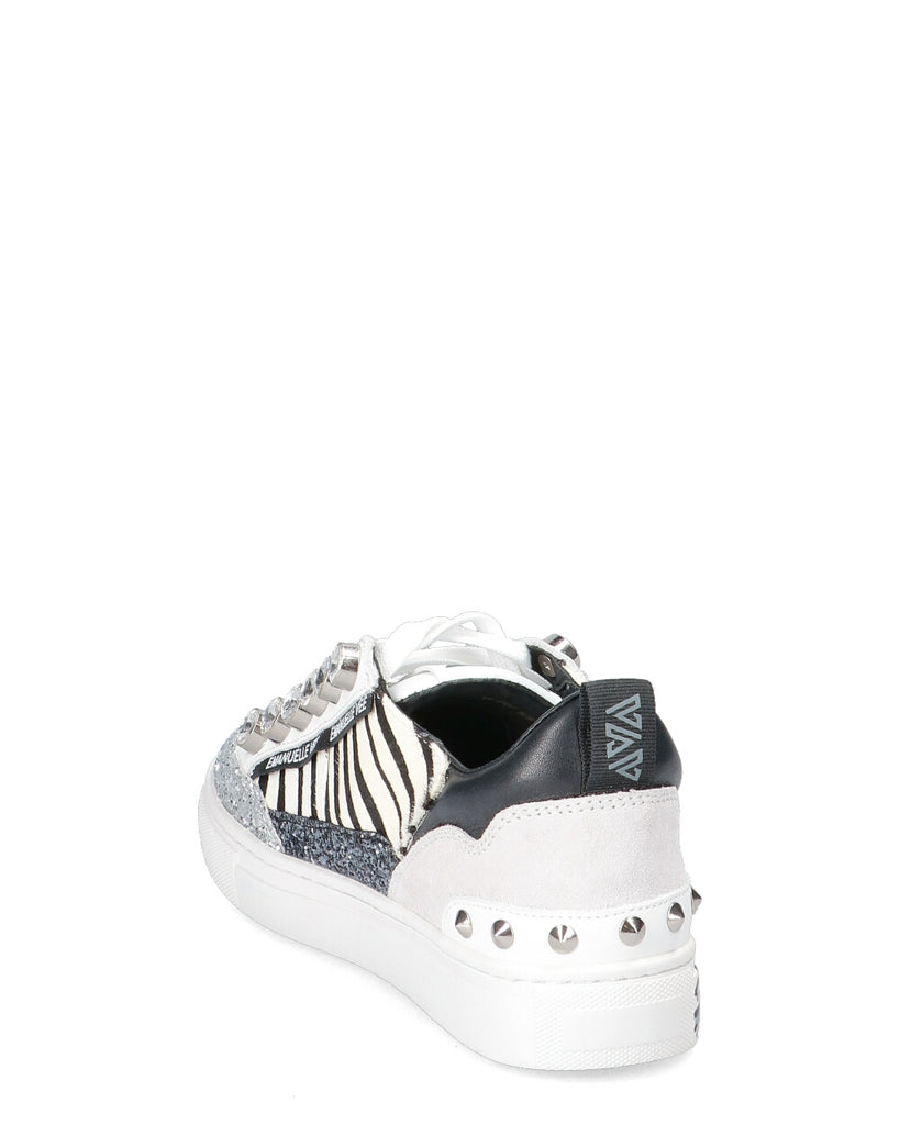 Sneakers in pelle Tomaia in pelle Lavorazione cavallino Stampa Soletta in pelle Interno in tessuto Suola in gomma Allacciatura frontale