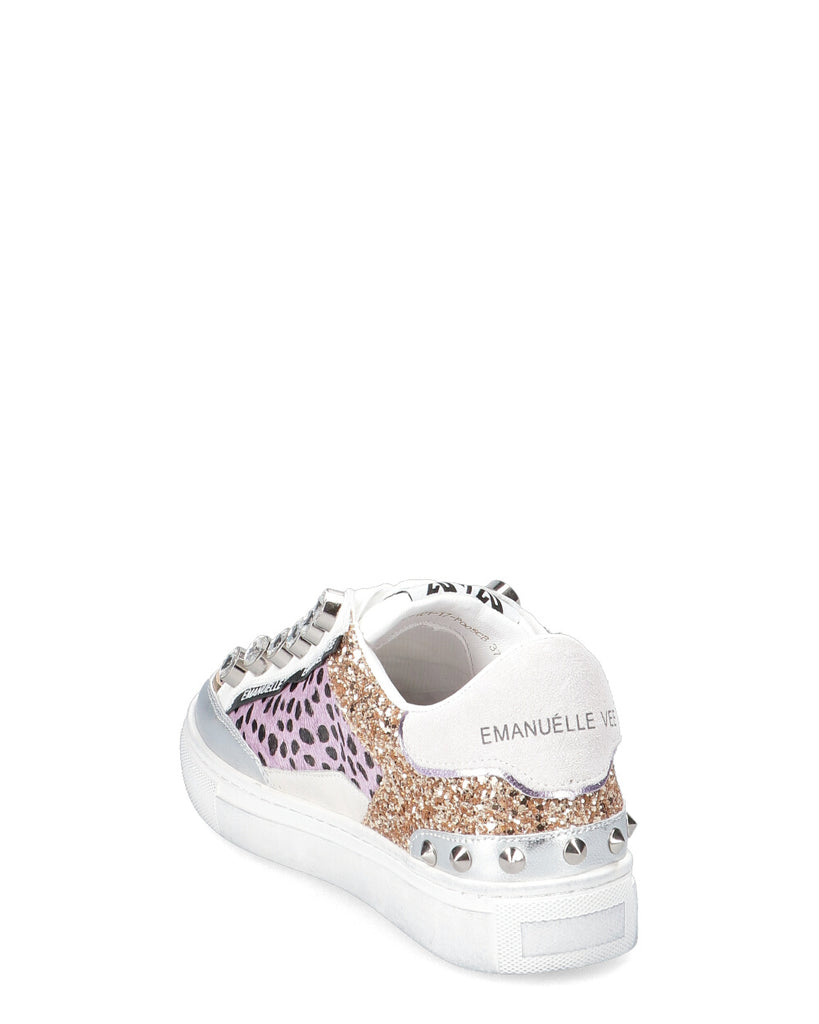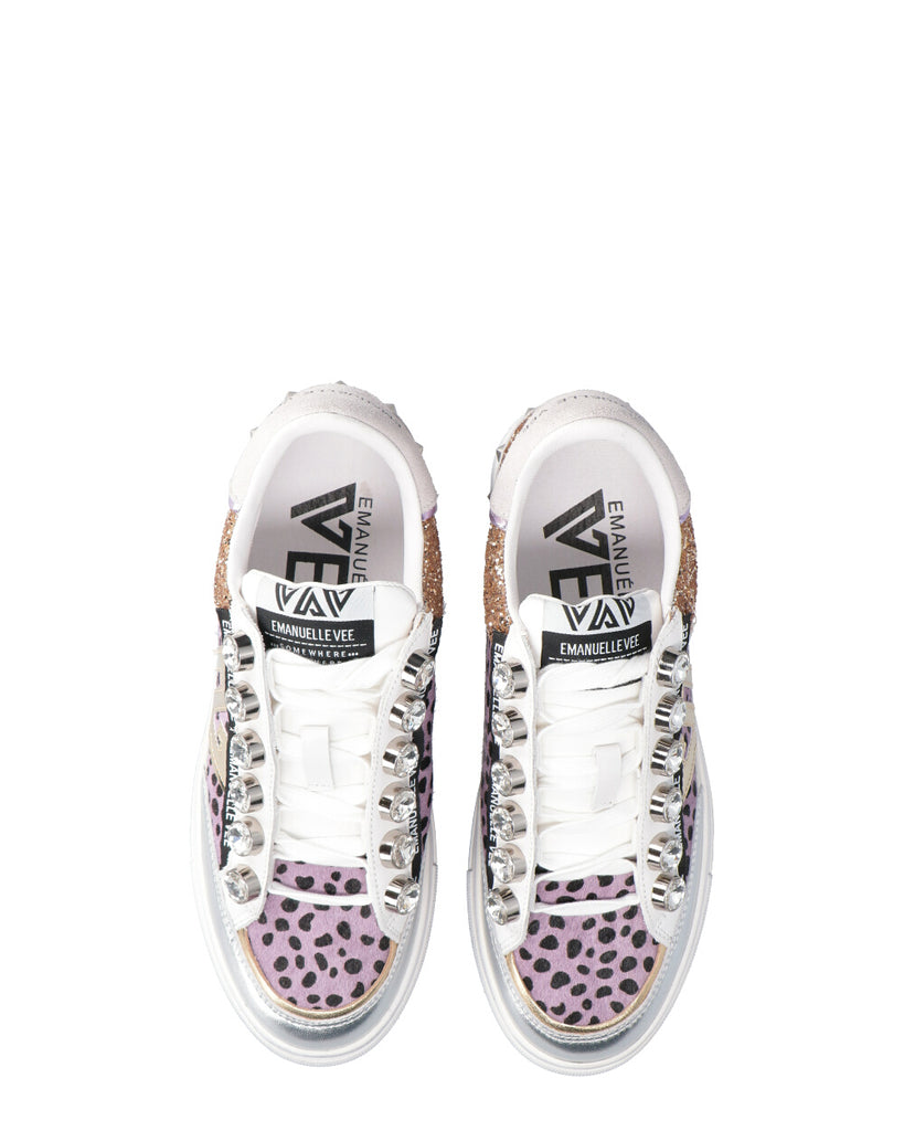 tomaia in pelle e tessuto chiusura con lacci interno in pelle e tessuto soletta estraibile in lattice e pelle logo sulla linguetta inserto stampa logo pietre applicate borchie applicate suola in gomma altezza della suola (cm): 3