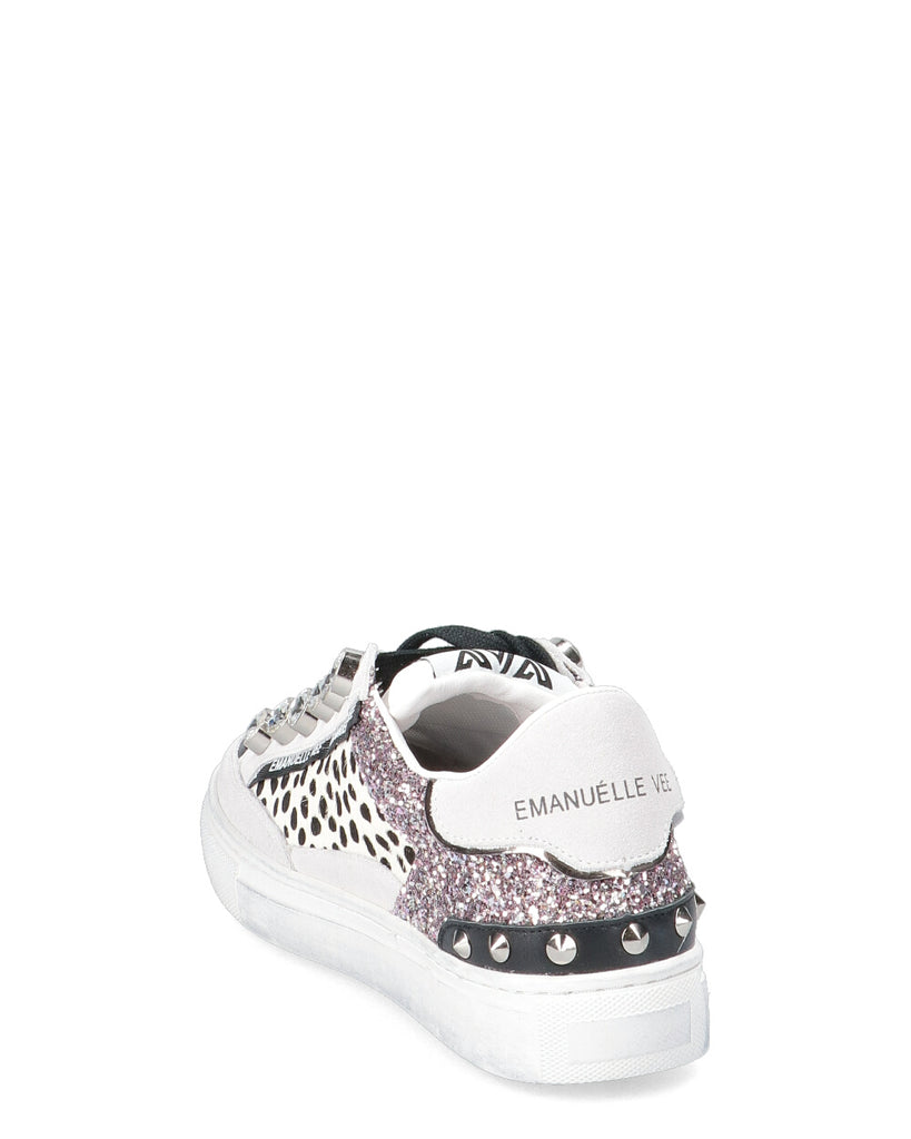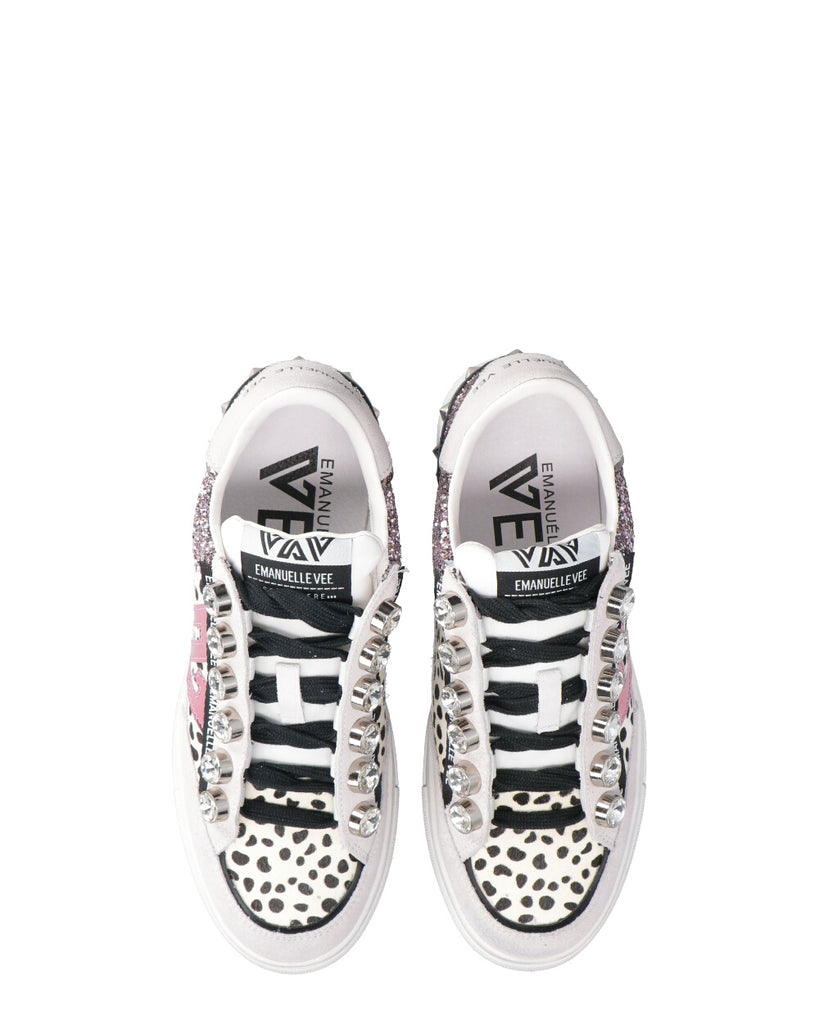 tomaia in pelle e tessuto chiusura con lacci interno in pelle e tessuto soletta estraibile in lattice e pelle logo sulla linguetta inserto stampa logo pietre applicate borchie applicate suola in gomma altezza della suola (cm): 3