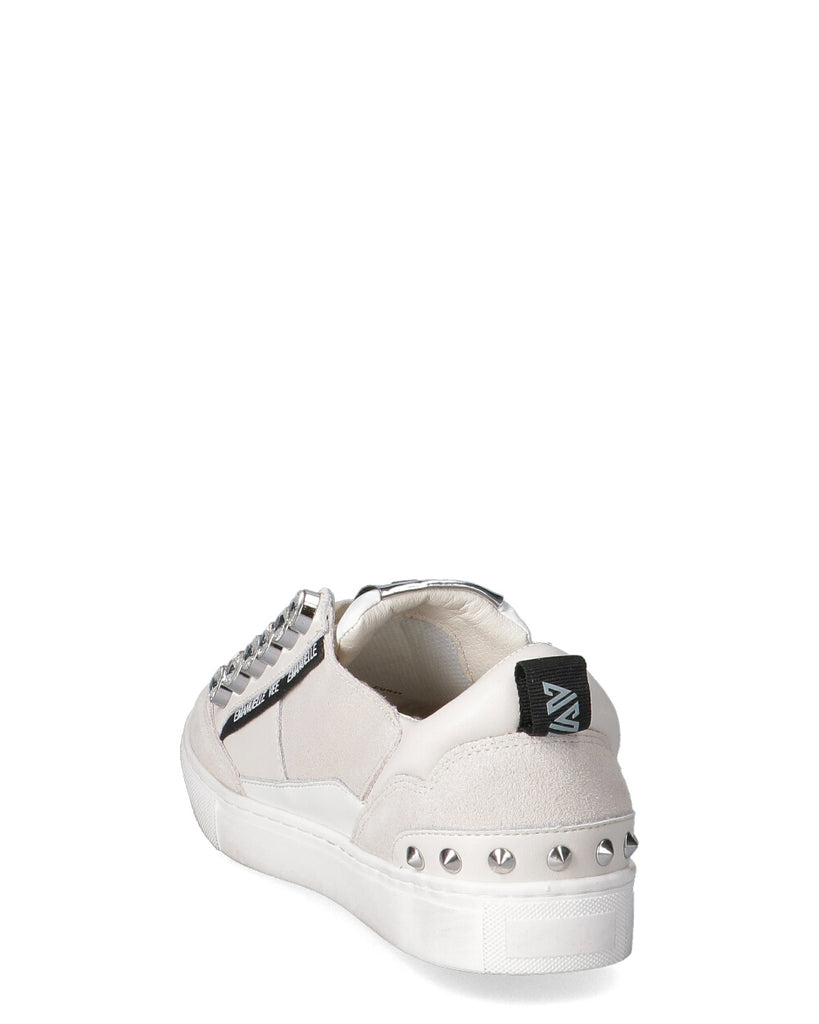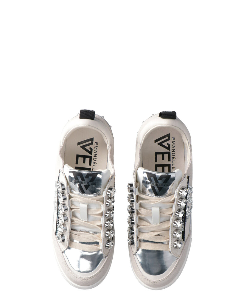 -sneaker allacciata multi materiale con dettaglio strass sull'allacciatura -Soletta interna estraibile -Fondo gomma -Altezza suola 2.5 cm