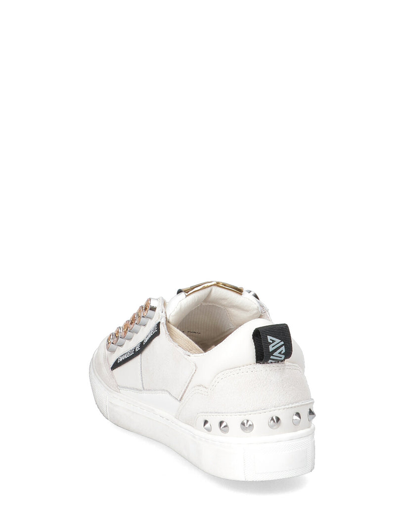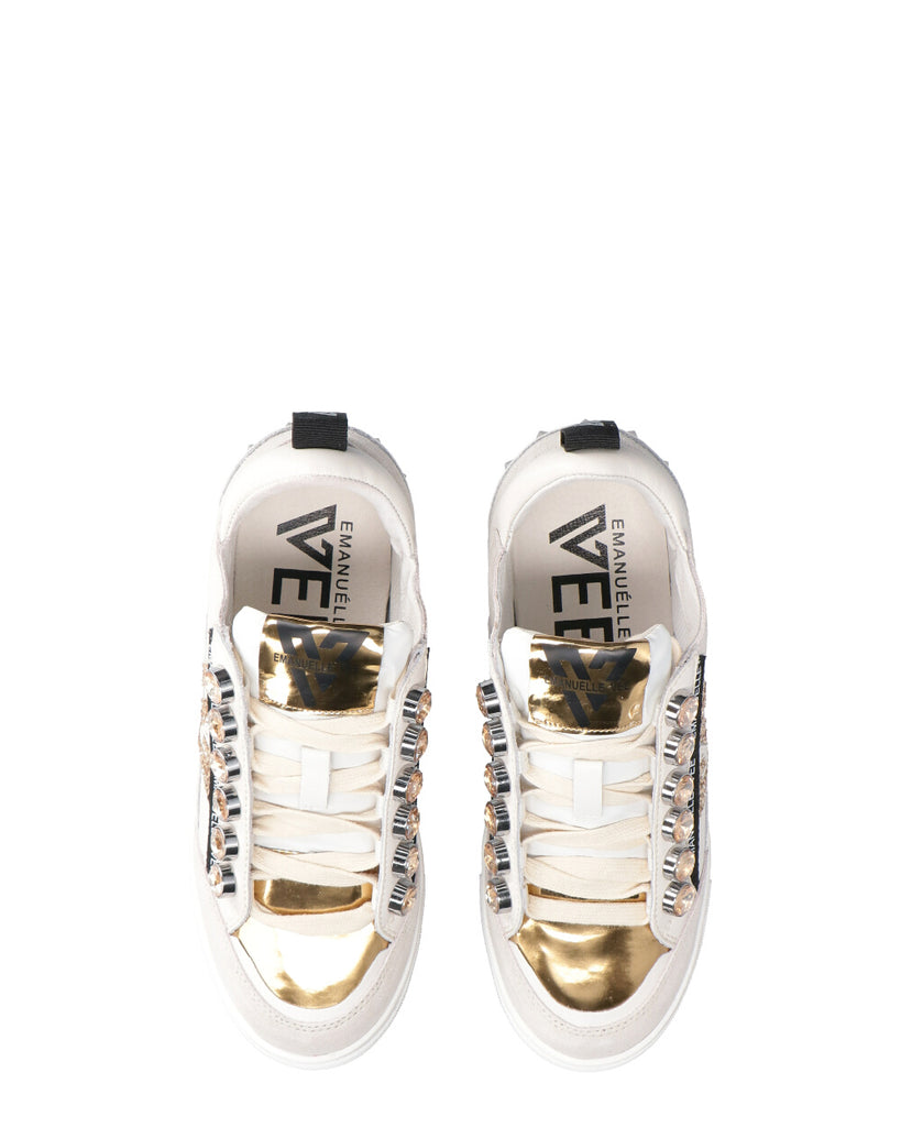 -sneaker allacciata multi materiale con dettaglio strass sull'allacciatura -Soletta interna estraibile -Fondo gomma -Altezza suola 2.5 cm