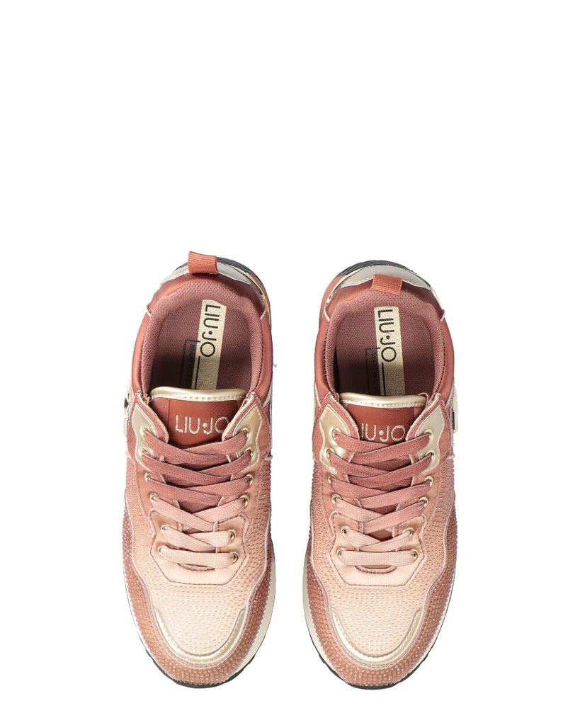 Sneakers con tomaia in raso dégradé Strass all-over Inserti effetto laminato Lacci piatti dégradé Logo LJ metallico applicato sul lato Etichetta jacquard sulla linguetta Spoiler effetto metallico Suola platform con design multistrato Battistrada dentellato Altezza suola: 4,5 cm