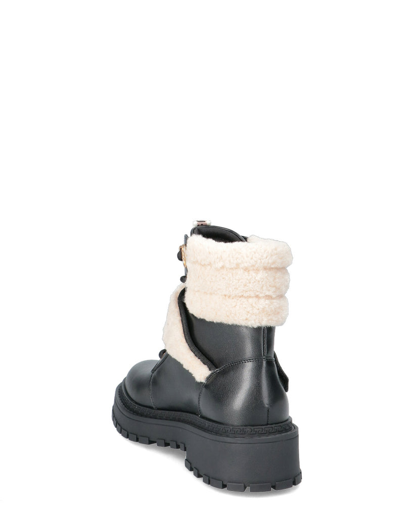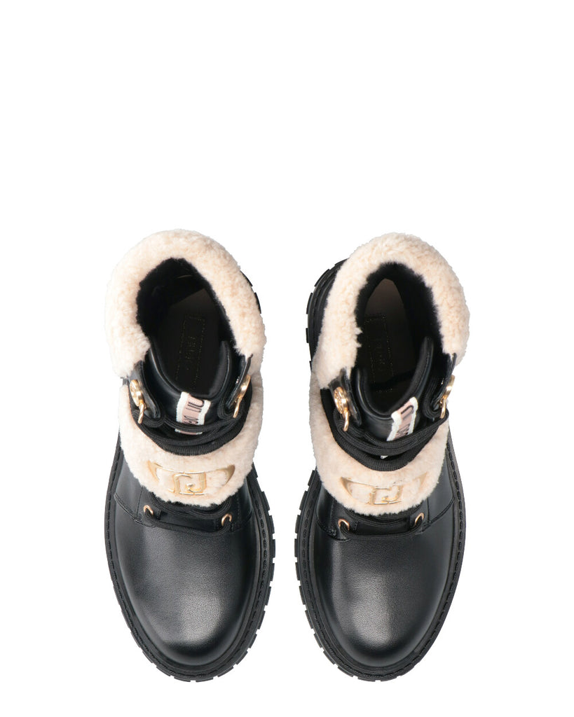 Anfibi in pelle Fodera warm Dettagli in pelliccia sintetica Maxi logo monogram Chiusura con velcro Occhiello con logo monogram Fondo con guardolo logato Battistrada dentellato Altezza suola: 5 cm Altezza gambale: 15 cm