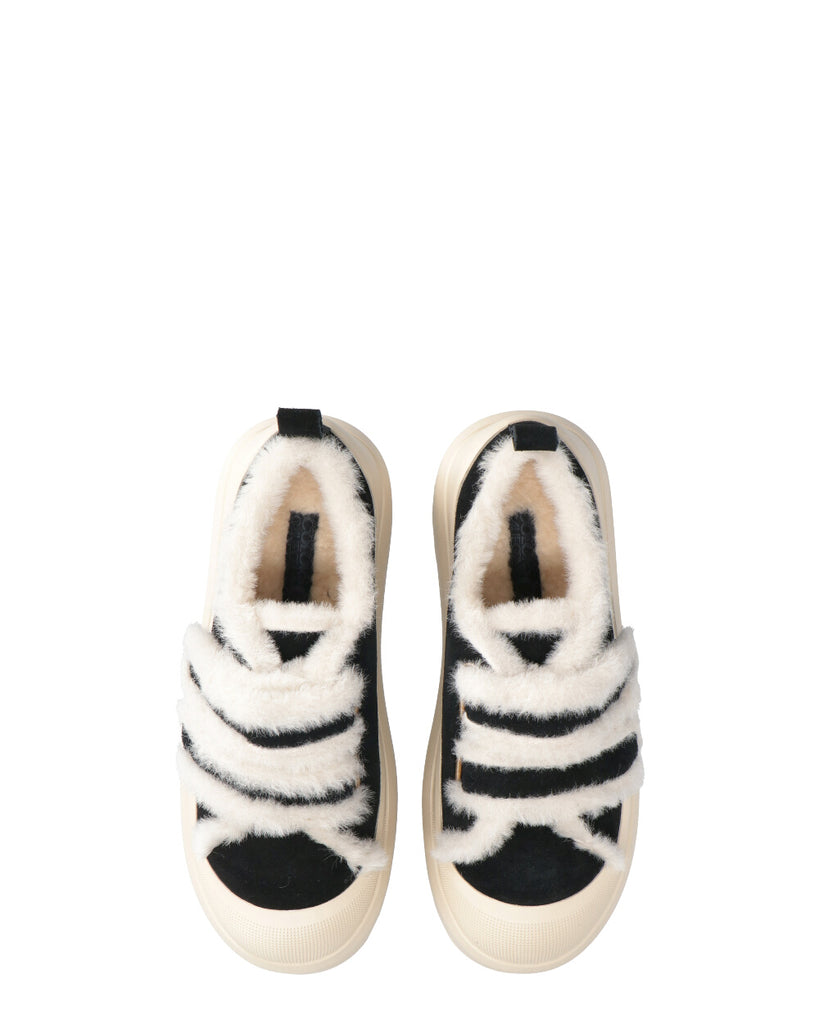 Sneakers in pelle scamosciata Rivestimento interno in eco pelliccia Chiusura on strap Altezza fondo 4 cm