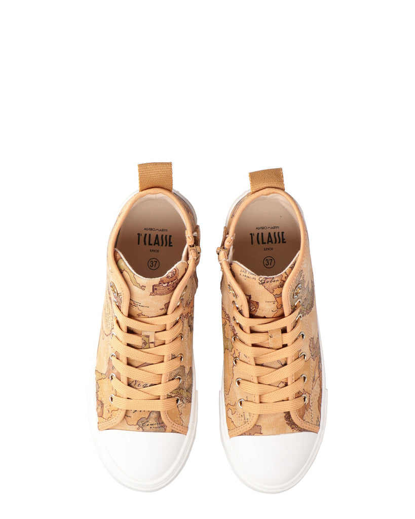 Sneakers alte in tessuto stampa geo classic Chiusura con lacci e zip laterale Fondo gomma Soletta interna estraibile altezza fondo 3 cm
