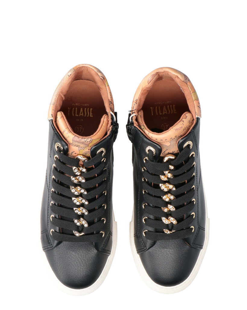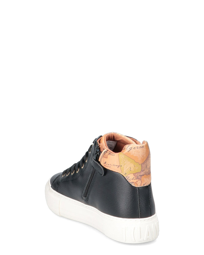 -Sneakers alta in ecopelle con zip laterale e lacci frontali -Soletta interna in pelle estraibile -Fondo gomma, altezza fondo 3 cm