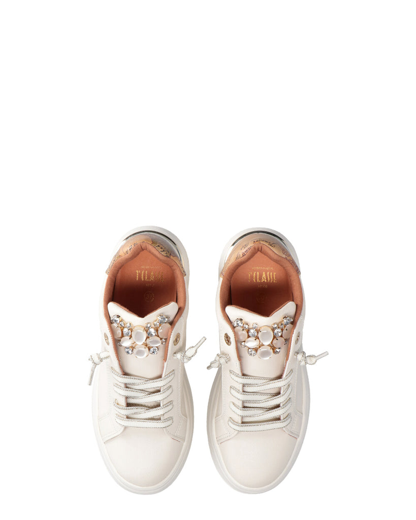 Sneakers in ecopelle Linguetta con riporti strass Fodera in pelle e tessuto Fondo 4 cm