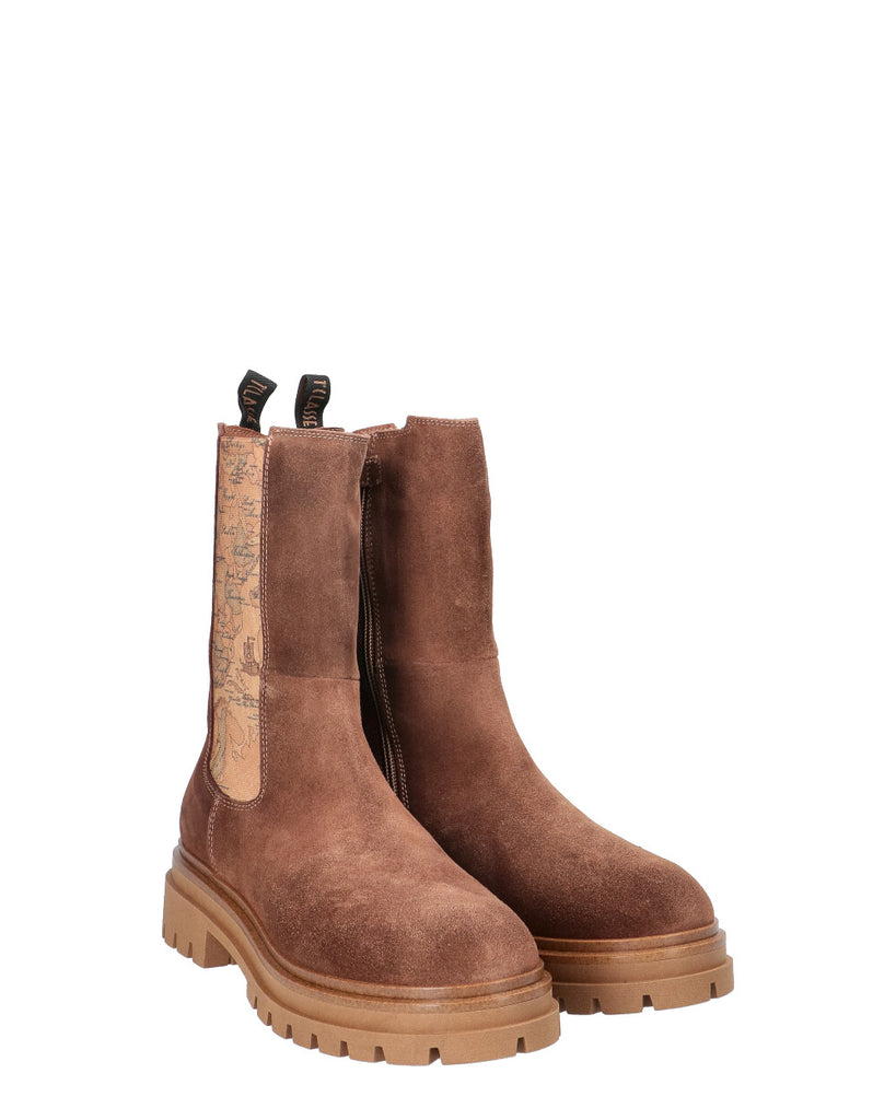 Stivaletto in pelle scamosciata Zip laterale Fondo gomma Altezza stivaletto 20 cm