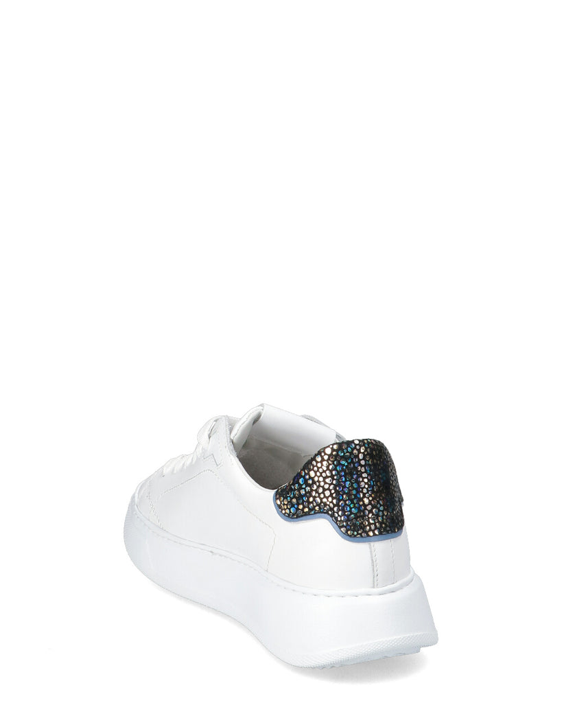 Sneaker in vitello con spoiler in pelle con stampa leopardata. Sottopiede in memory con costruzione estraibile, fodera interna in pelle spugna di cotone. Suola in gomma ultra leggera con altezza al tallone. Suola: 4 CM