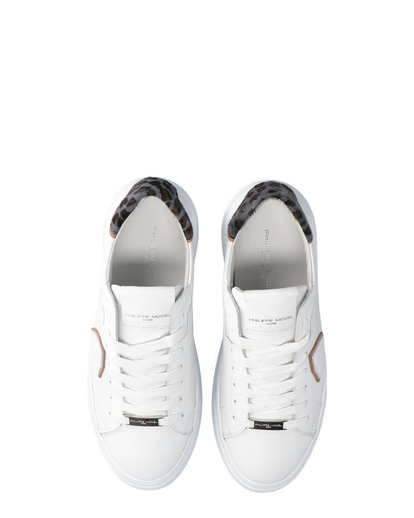 Sneaker in vitello con spoiler in pelle con stampa leopardata. Sottopiede in memory con costruzione estraibile, fodera interna in pelle spugna di cotone. Suola in gomma ultra leggera con altezza al tallone. Suola: 4 CM