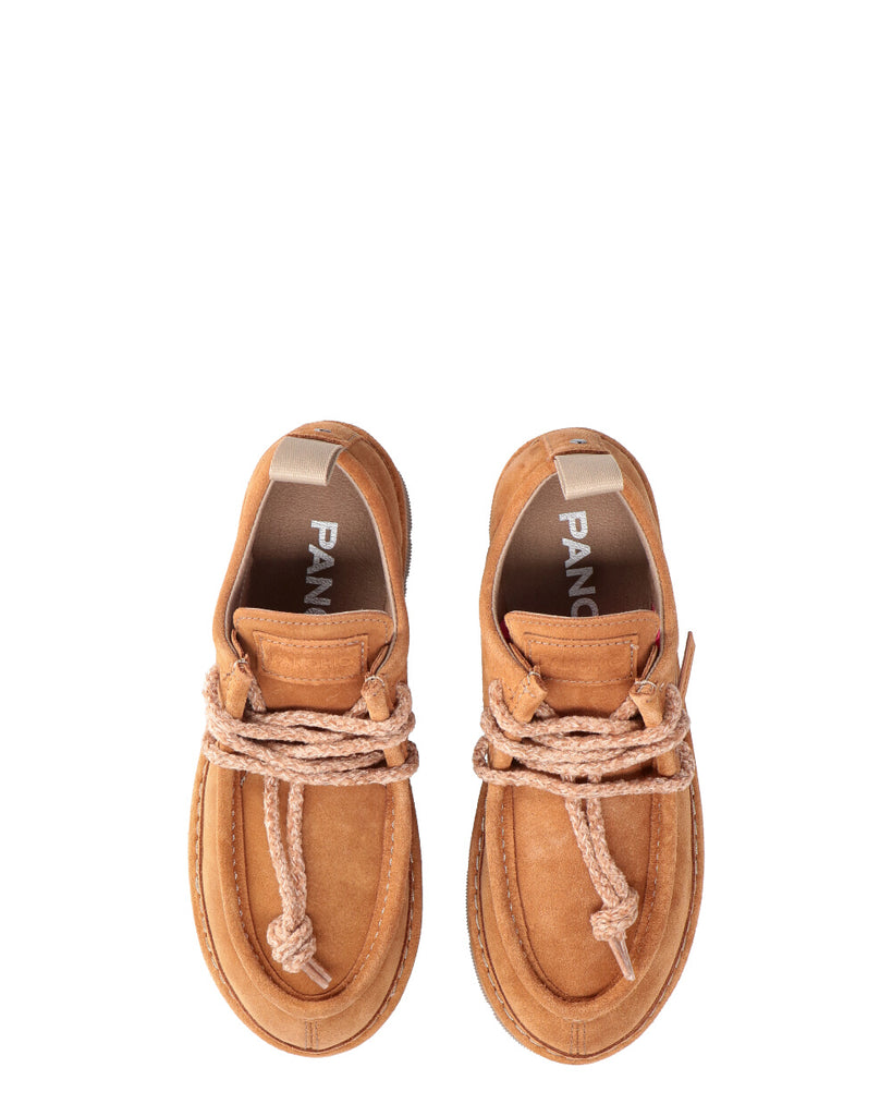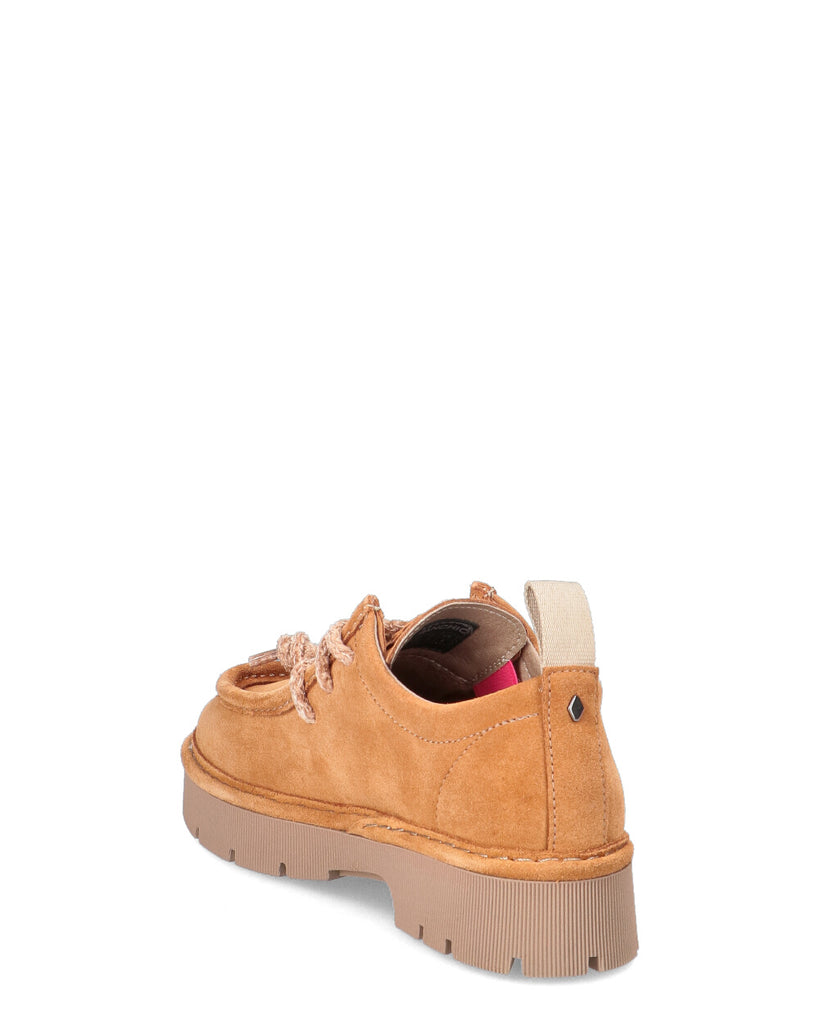 -Stringate in suede con fodera in panno misto lana -Soletta estraibile -Fondo gomma -Altezza fondo 4 cm