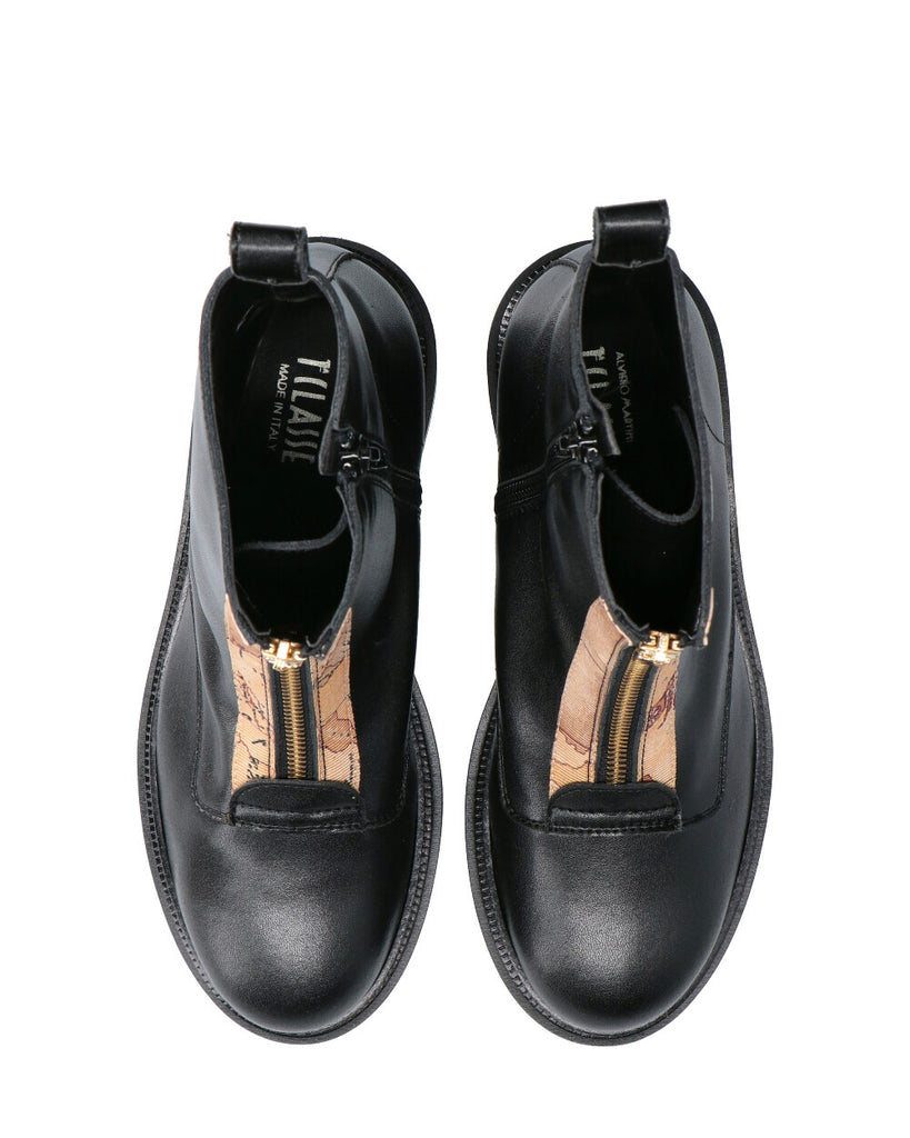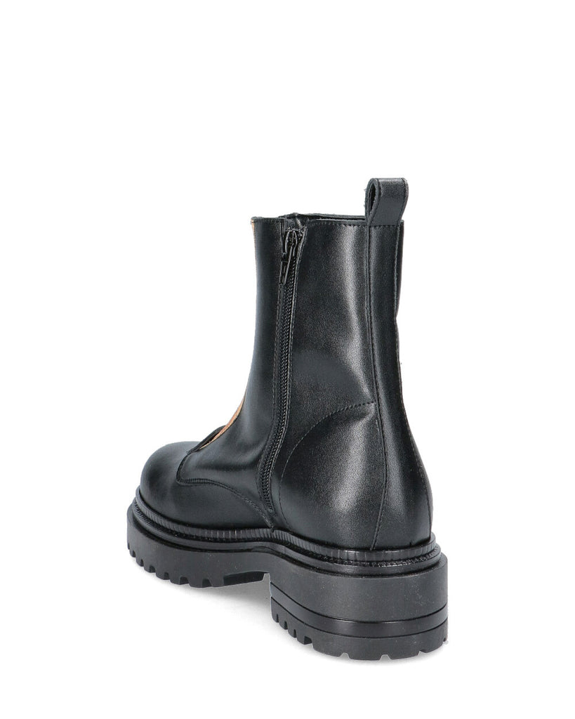 -Stivaletto in pelle con zip frontale e al lato -Fondo in gomma -Interno foderato in pelle -Altezza suola 4 cm