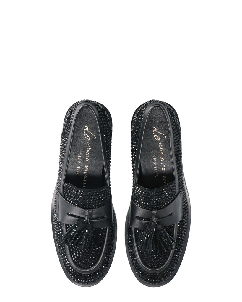 Mocassino in pelle con riporti strass Fodera in pelle Fondo anti slip Altezza tacco 2 cm