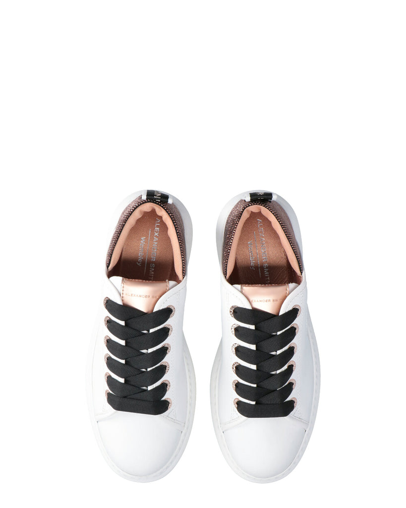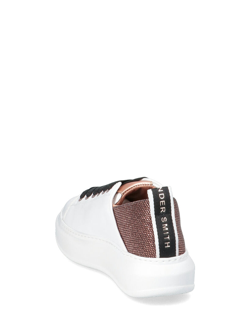 Sneakers in pelle Chiusura con lacci Dettaglio retro tallone con strass Fondo gomma Altezza fondo 3 cm