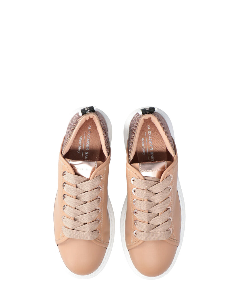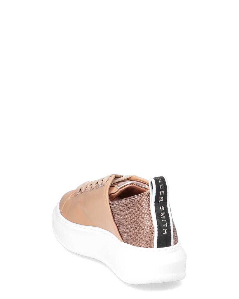 Sneakers in pelle Chiusura con lacci Dettaglio retro tallone con strass Fondo gomma Altezza fondo 3 cm