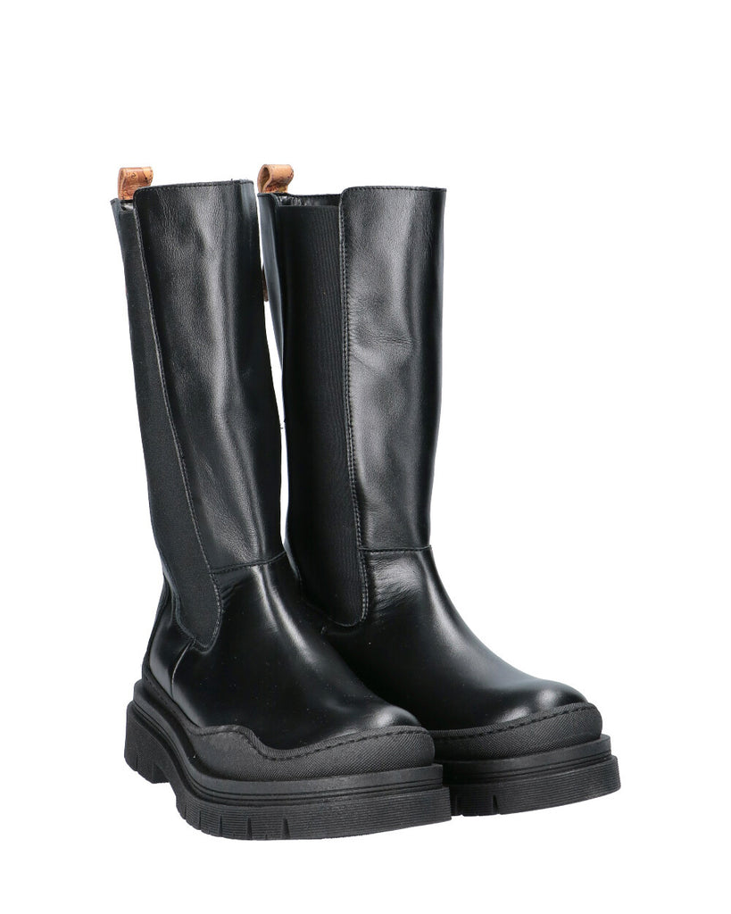 -Stivale in pelle con bande elastiche laterali -Rivestimento interno in pelle -Fondo gomma