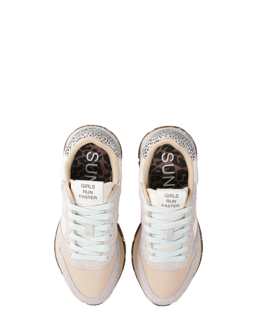 Sneakers in tessuto e riporti in pelle scamosciata Dotate di doppi lacci Altezza fondo 3 cm