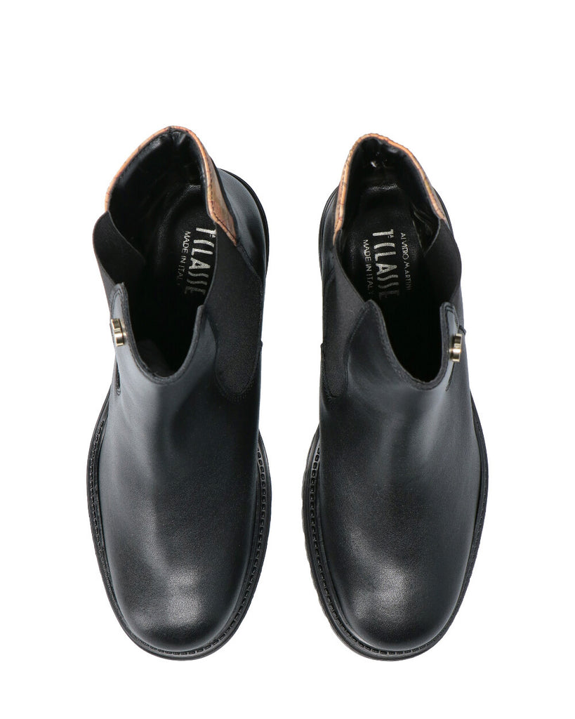 -Tronchetto in pelle -Bande elastiche -Fondo gomma -altezza tacco 6.5 cm