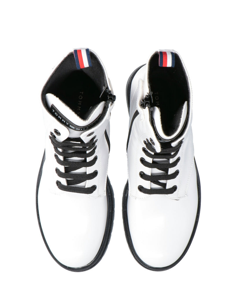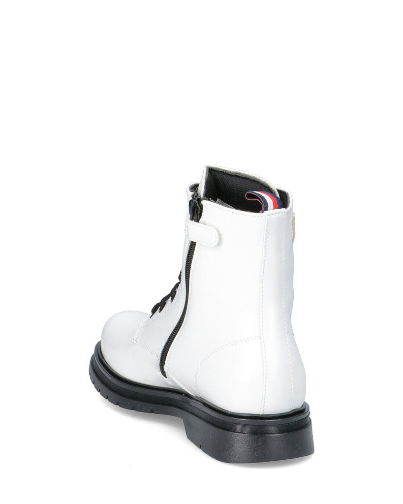 -Biker in ecopelle -Chiusura con zip laterale e lacci frontali -Fondo gomma